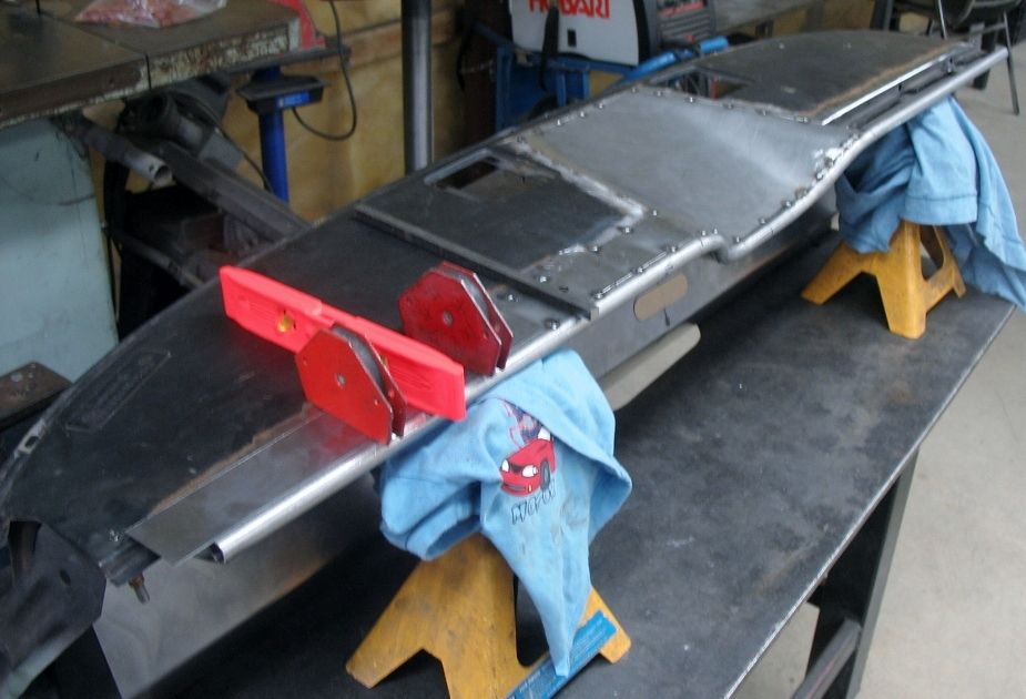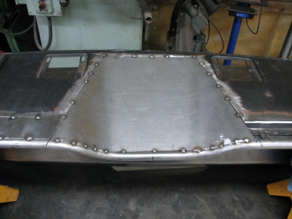 And good catch, that was a multi-tasking post mistake by me. It's a compound cornered piece out of two sheets and TIG welded together along with custom bent/ rolled brackets inside to hold the stereo in place. |