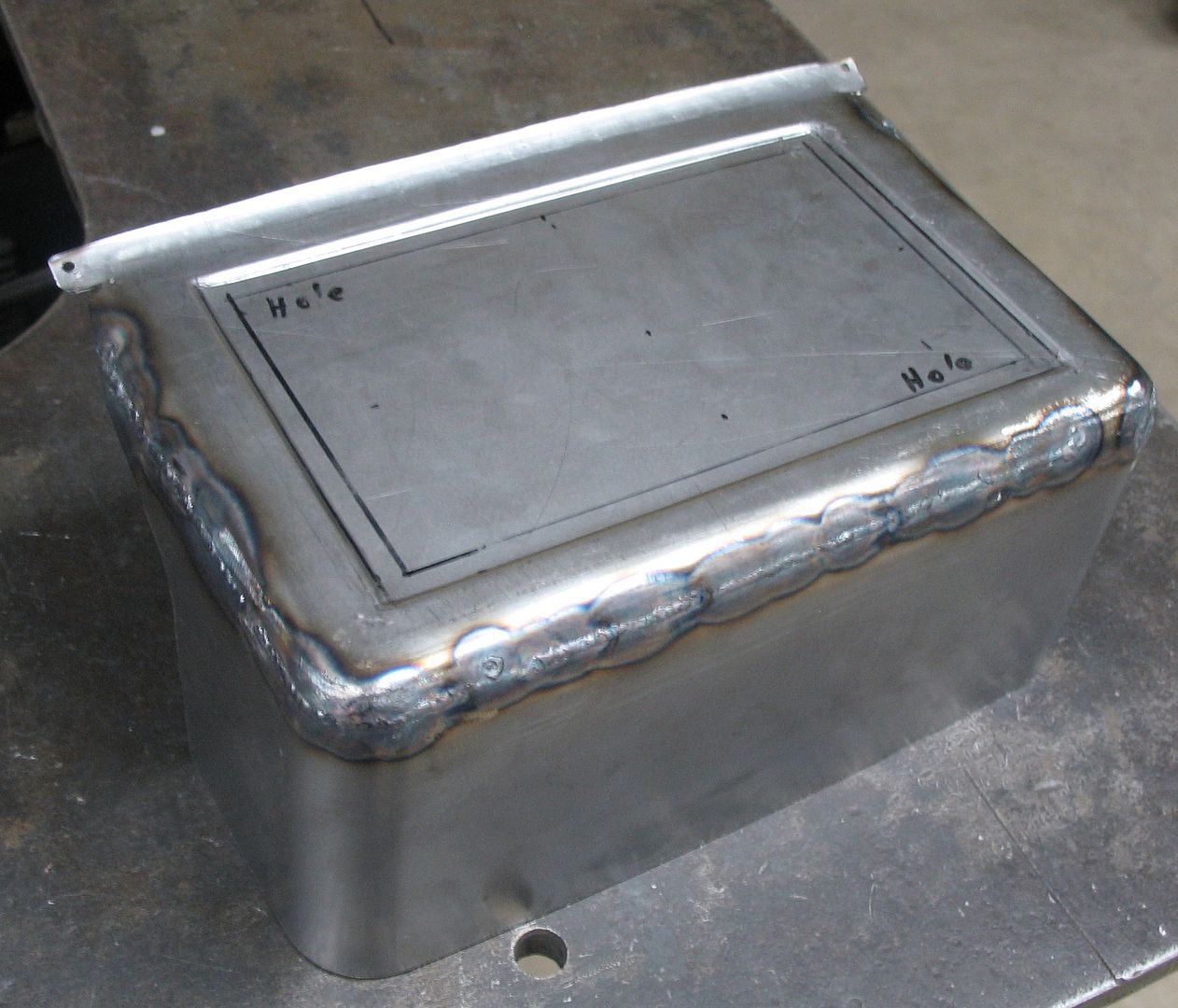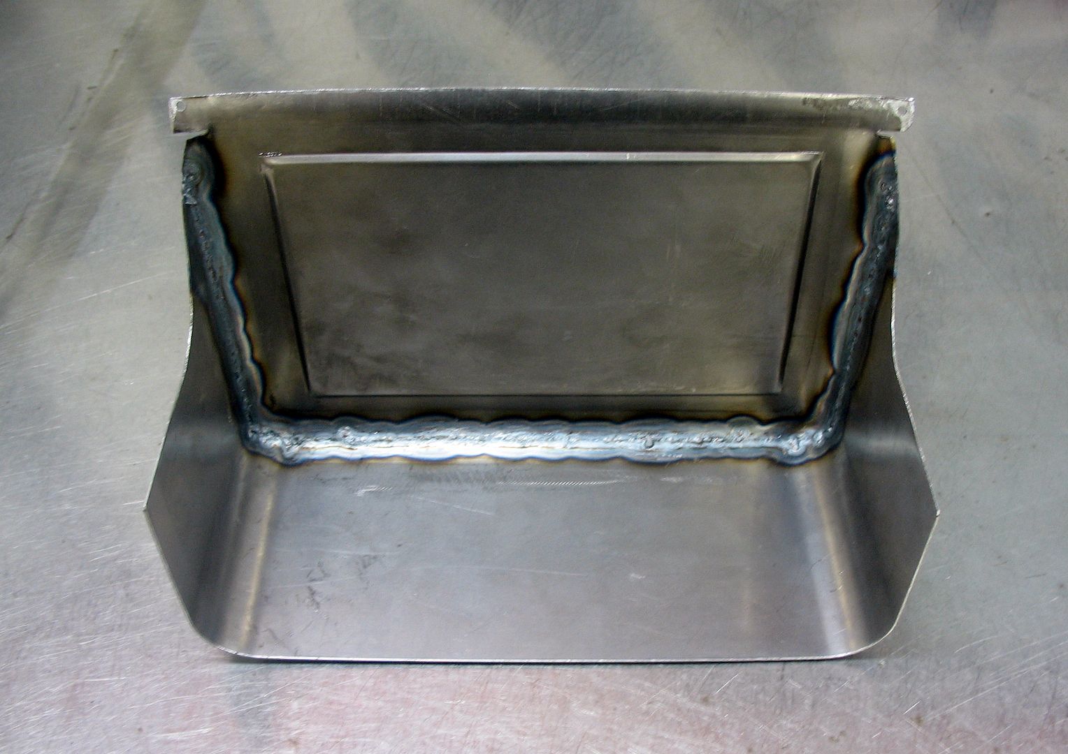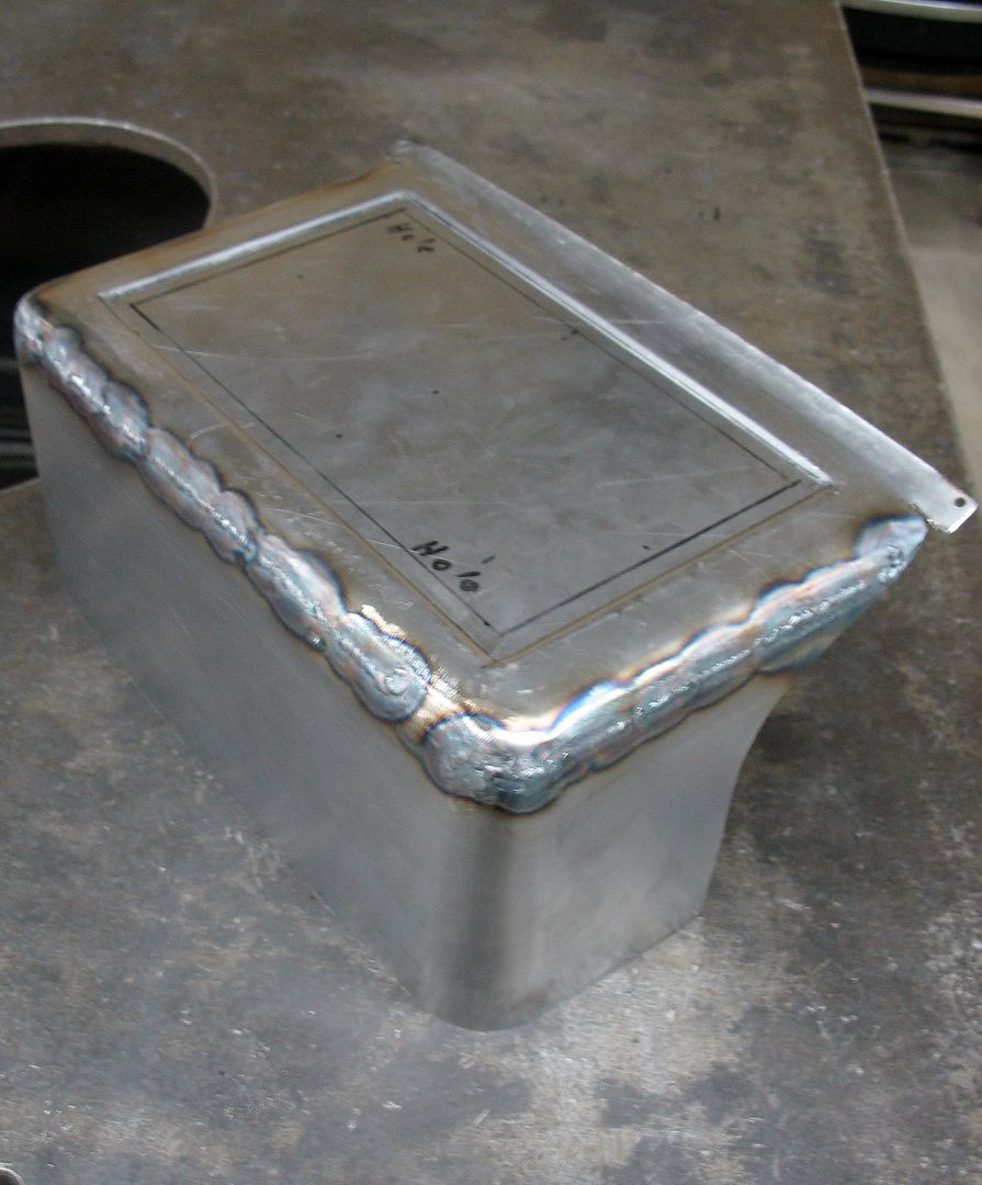 >Made from two pieces and compound welded 100% What does compound welded mean ? I assume you formed the indent with the beadroller, then rolled the edges over with a hammer before welding it to the rest of the box. Be interested if you had some other way of forming the indent. I guess you might have also hammer formed that using some wooden die pieces or something also. |