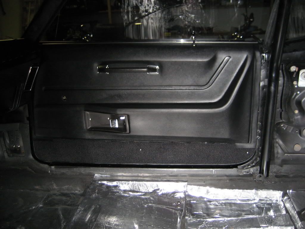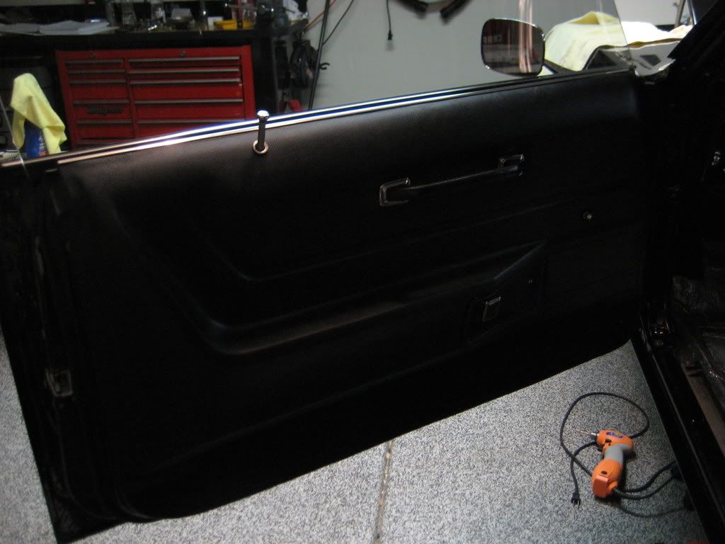 I have done a bunch of misc crap. Trimmed the glove box insert so it would fit. Does anything bolt on these cars??? :lol: Have one door panel that has already been on and ready to go. The clips weren't even fricking close. This door panel was ridiculous. I spent the better part of the night on it. The drivers side fits nice! Screws through the handle and carpet will hold it on since I am running a deluxe interior. I found out I have to change window regulators so they are setting in a box in the garage. I did put on the outside window trim and quarter window rubber, rear license plate bracket, rear lock cylinder, new dome light and bezel. Some other misc crap. It's been a lot of fun so far. :D