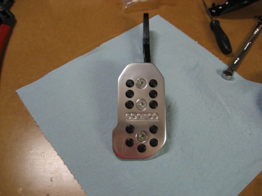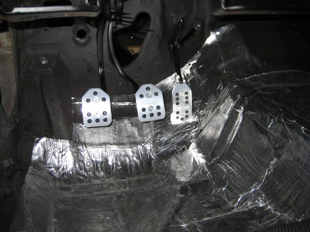 First..pedal set up. Took a stock brake clutch set up and had my stock brackt sand blasted, epoxy primed and I painted it. Then set it up for the new pedals. I tried the stock accel setup but realized it wouldn't work for multiple reasons. I ended up using a lokar setup and modifying the brand new pedal setup for my taste.:D It was more work than it looks like. Bolt in my ass. Ya right http://i200.photobucket.com/albums/a...9/IMG_0752.jpg So I mocked it up and figured out the pedal height was way off anyway. I then drilled soe holes and did a little cutting and ended up with this. Nice billet black anodize with my sparco pedal that are killer. The brake pedal is just a hair off in reality. The pedals are not where they will end up. http://i200.photobucket.com/albums/a...9/IMG_0761.jpg http://i200.photobucket.com/albums/a...9/IMG_0756.jpg http://i200.photobucket.com/albums/a...9/IMG_0753.jpg |