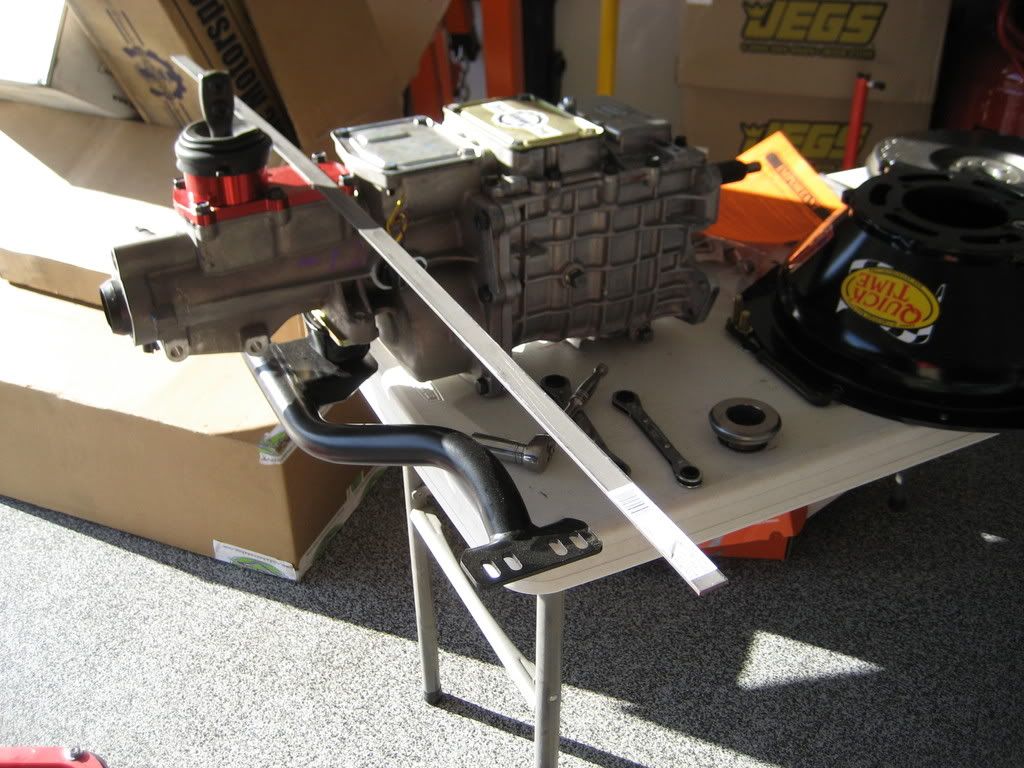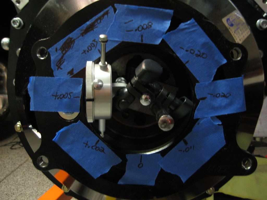 The bellhousing is bolted on and it's time to measure the run out. Of course it's out of spec:unibrow: What would be the fun of something bolting on and not needing an hour or two of tweeking. Alcoholics anonymous where are you. :lol: Strike four...wait thats to many. The adjustable ball stud is in route. haha
