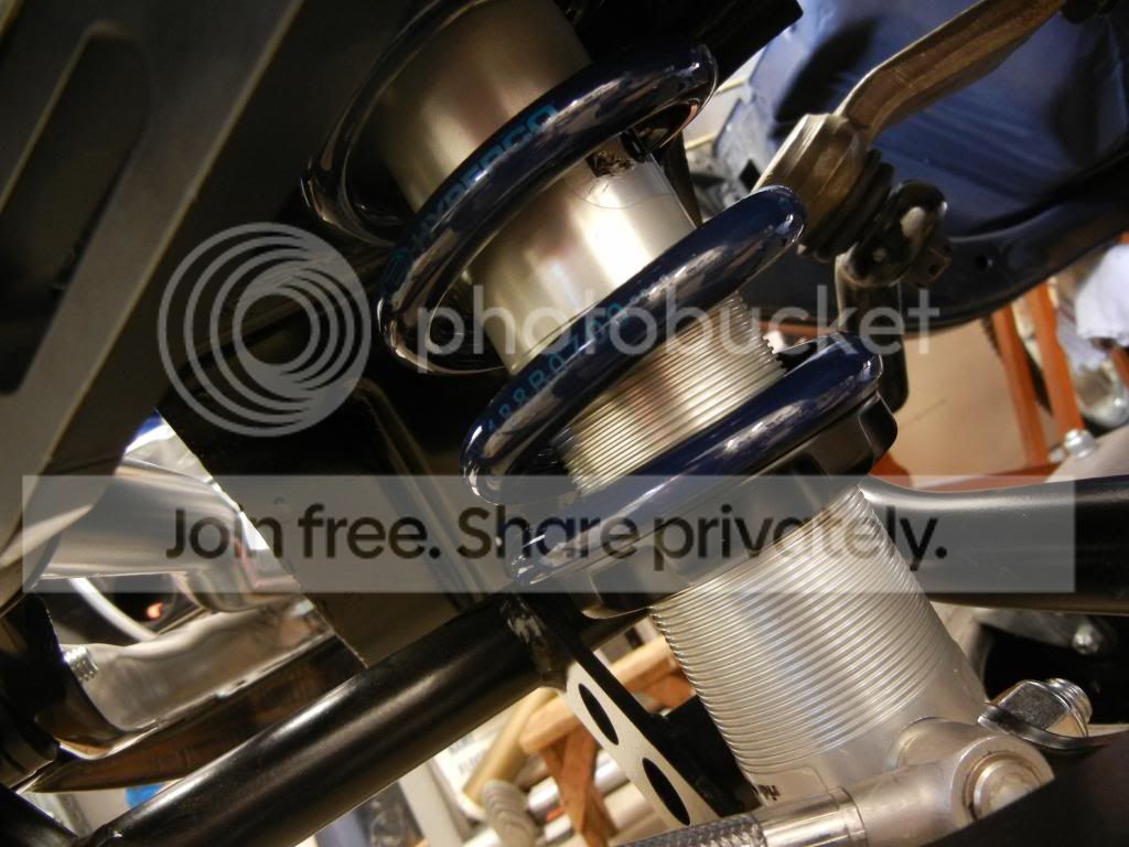 The control arms are just really burly pieces. I regret that I didn't take any pics of them prior to assembly so here are a couple from RT's website: http://www.ridetech.com/store/images...8f7435350a.jpg The lowers equipped with delerin bushings are built like a bridge abutment and fit perfectly into the spring pockets. The uppers, also delerin equipped, feature a clever means of adjusting caster. Rather than stacking up a crapload of shims to get to the caster setting you desire, the RT cross shaft is milled out to accept one of three slugs that are centered or offset to the front or rear. This provides for three much smaller adjustment ranges for caster w/o a cludgey stack of shims. [Note: I do in fact have a crapload of shims there. Seemed like the best place to put them so I didn't lose them before I got the car back on the ground and can do a rough alignment.] http://i490.photobucket.com/albums/r...ps5a4cc4ee.jpg As you can probably tell, I'm really excited about the shocks. Having Fox practically in my back yard (35min drive) is a nice bonus as well. And again, the fit and finish of the parts was top notch, service from RT before and after the sale has been stellar. I couldn't be happier at this point and I'm really looking forward to developing this solution to work in harmony with the Lateral Dynamics 3-link. Next up.....My UPS guy is now out on disability.....here's why.... http://i490.photobucket.com/albums/r...pslxkwspm0.jpg |