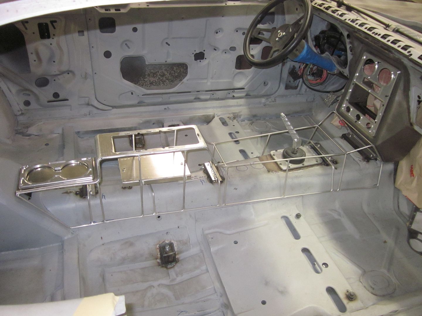 http://i1015.photobucket.com/albums/...n/IMG_1954.jpg http://i1015.photobucket.com/albums/...n/IMG_1955.jpg WE have been plugging away on getting the center console fabricated.. WE have been constructing the frame out of aluminum.. It is taking a nice shape to it.. http://i1015.photobucket.com/albums/...n/IMG_1958.jpg This Firebird is getting a seat in the back.. so we are getting cup holders in the rear.. http://i1015.photobucket.com/albums/...n/IMG_1959.jpg |