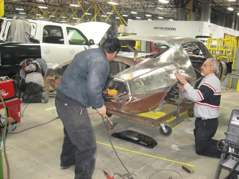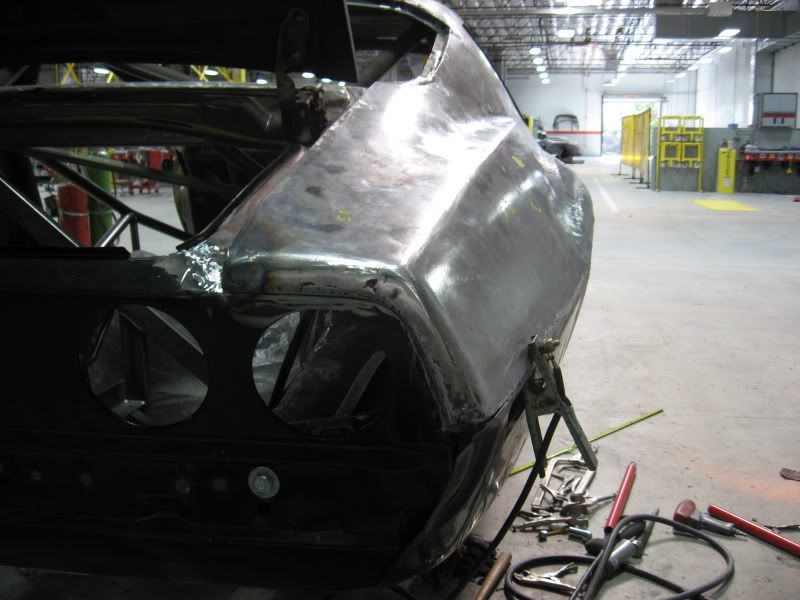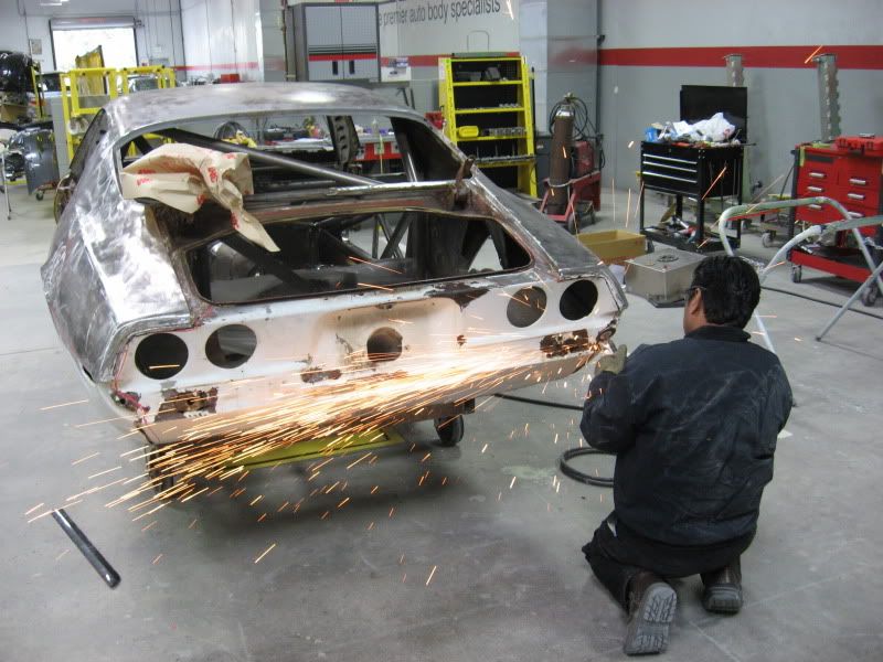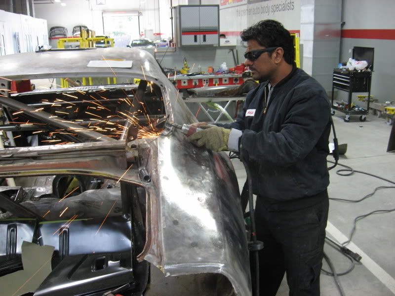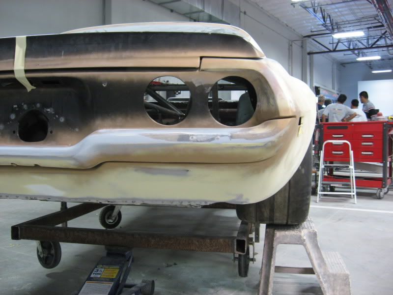 http://i80.photobucket.com/albums/j1...b/IMG_1891.jpg http://i80.photobucket.com/albums/j1...b/IMG_1920.jpg Our shop foreman, Bo, is starting the flares on the quarter panels. http://i80.photobucket.com/albums/j1...b/IMG_1896.jpg By next week, I should have some photos showing major progress on the rear body work. |