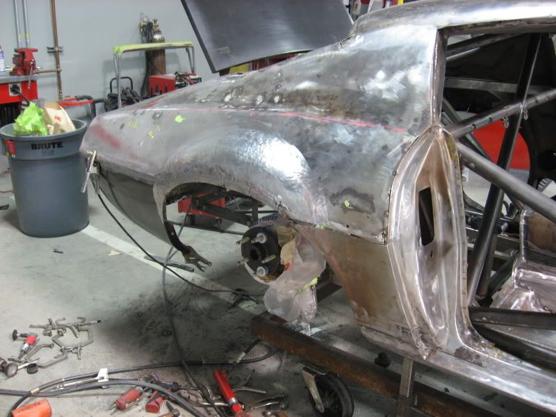 Here are a couple shots to show where we are. Many more to come. The flares are all metal fabricated. http://i80.photobucket.com/albums/j1...b/IMG_2002.jpg We pushed out the quarter panels about 1 1/2" along with the flares. http://i80.photobucket.com/albums/j1...b/IMG_2005.jpg These are the "small" tires http://i80.photobucket.com/albums/j1...b/IMG_2030.jpg Here is the car with some of the fiberglass panels getting fitted. http://i80.photobucket.com/albums/j1...b/IMG_2129.jpg In a couple weeks, I hope to have a lot more progress done and photos. Thanks for watching! Brian |