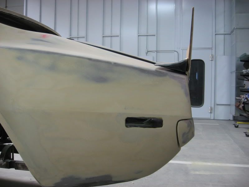 Here are some shots of where we are now. The quarter panels are finished in metal and now the "bondo" begins to complete the shaping. The fiberglass bumper is being shaped to the quarter panels to give it a nice clean look. I will post some more photos in the next couple weeks. http://i80.photobucket.com/albums/j1...b/IMG_2841.jpg http://i80.photobucket.com/albums/j1...b/IMG_2838.jpg |
