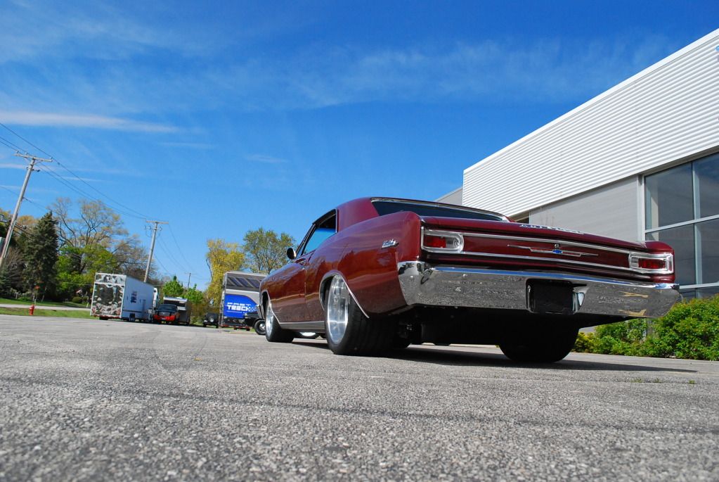 What sizes are you running on the wheels/tires? Any more updates on the blue 67 Chevelle? Looks like it's coming together in the background.