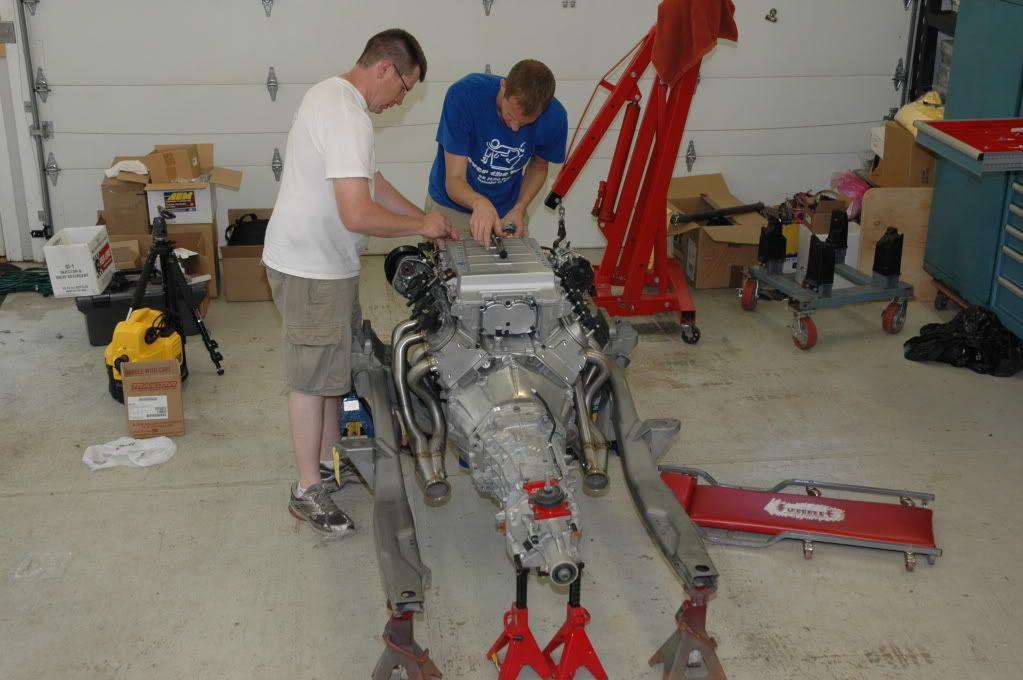 Stielow's new powertrain being prepped for engine harness build.:D