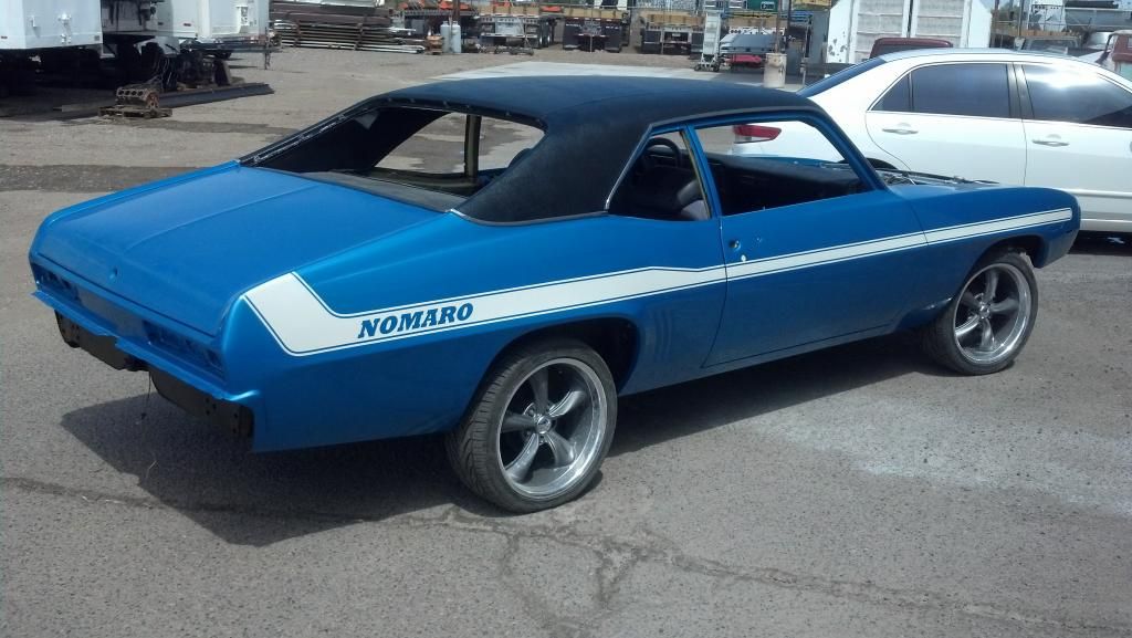 http://i1072.photobucket.com/albums/...psc48e98dc.jpg http://i1072.photobucket.com/albums/...ps199aadd9.jpg http://i1072.photobucket.com/albums/...psa36c68ad.jpg http://i1072.photobucket.com/albums/...pscef80540.jpg http://i1072.photobucket.com/albums/...ps4288005e.jpg http://i1072.photobucket.com/albums/...ps8047e90e.jpg http://i1072.photobucket.com/albums/...psb02c717f.jpg As you can see it needs tires and wheels and lowered which is all being done next. Also the interior will get a set of 69 Camaro front buckets with Black and White Houndstooth and the console horse-shoe shifter. Door panels and the rest of the interior will be stock black. Stay tune for more updates. Enjoy.... |