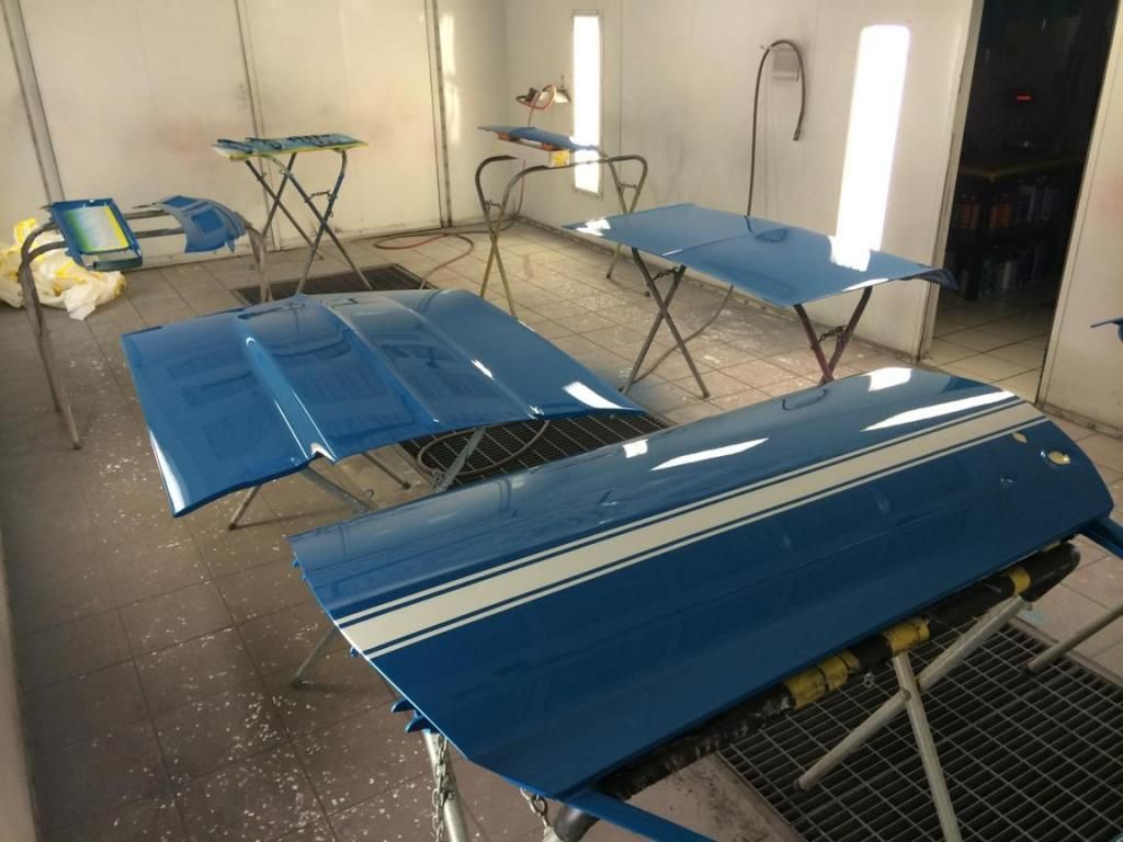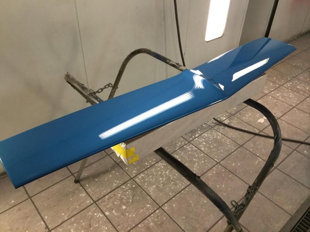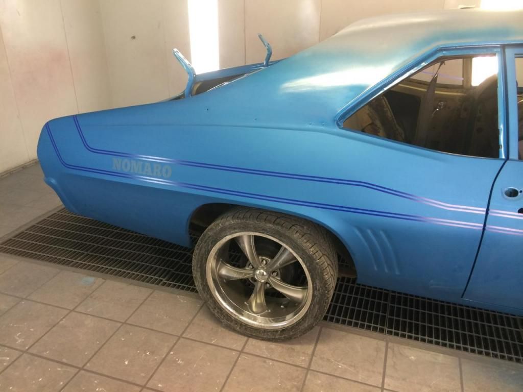 here is the white NOMARO stripe on the blue, some clear coat and a little sand and buff and the paint is done.