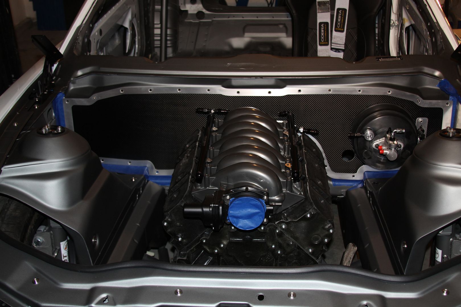 Race Ramps didn't though it would be an inconvenience pushing the car onto the ramps so they are using a Cadillac instead. Kinda took the wind out of the boys but they are dusting them self off and regrouping. Pace was slow down to a more relax level and they are moving on. Here are a couple of pictures with the mock up plastic engine. It is quite unfortunate that G5.R didn't get to debut as it's looks menacing and will be a great performer considering it's about 4 to 500 lbs lighter and 150 more HP than the upcoming Z/28. It was also going to debut a new twin plenum intake made from composite that looks killer. The manufacture was having a rapid prototype cut at the expense of about $10,000 just to have it on the car. I wish I could show you guys pics. http://i1231.photobucket.com/albums/...ps2b405de0.jpg http://i1231.photobucket.com/albums/...ps8312c250.jpg From inside the engine bay, the radiator appears to be floating as you can't see any brackets. The shroud in the picture is a mock up. The final version is much nicer, it was made by Derale specifically for G5.R. http://i1231.photobucket.com/albums/...pse6e3ea76.jpg http://i1231.photobucket.com/albums/...ps64774805.jpg Here is a little neat deal they did to the stock intake. Took some HP Sticky shield from Heatshieild Product and used it on the bottom of the intake to reduce the radiant heat off the engine. http://i1231.photobucket.com/albums/...pse4b4d297.jpg http://i1231.photobucket.com/albums/...psb252191f.jpg They are hoping to get invite at one of the Optima qualifying events next year and and make SEMA after all. |