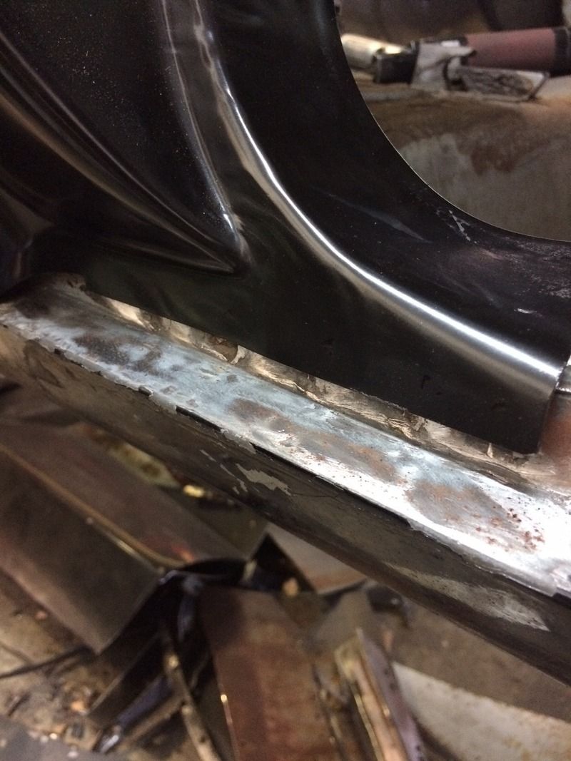 Well guys, so surgery went well, and I am on the mend. Still can't move my hand at the wrist full movement, but I can enough to get in the garage and do some work. The quarter panel is four spots from being officially welded in. I just need an extra hand on the last four. Here are pictures. Keep in mind, all these need to be buffed down.