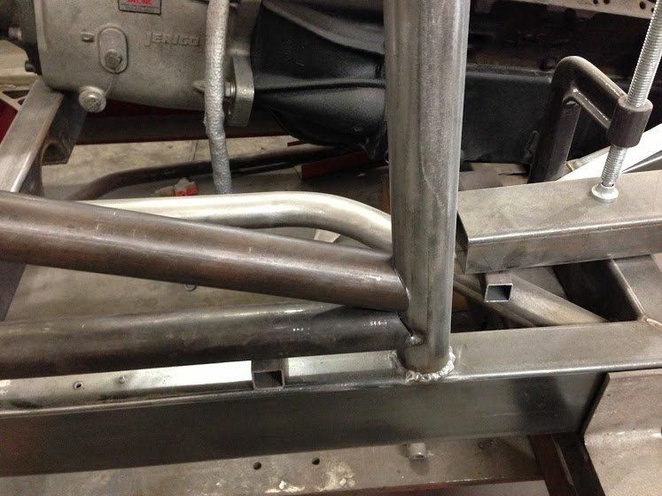 That motor/headers fit nicely in there it appears... I like the X member notch. I may have to do that same thing. How much lower is that? |