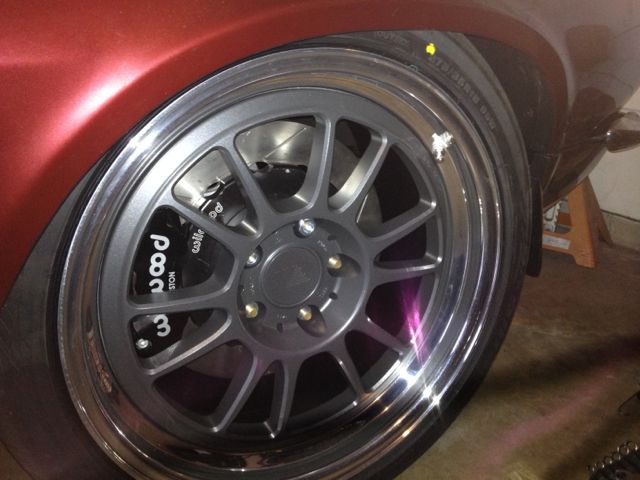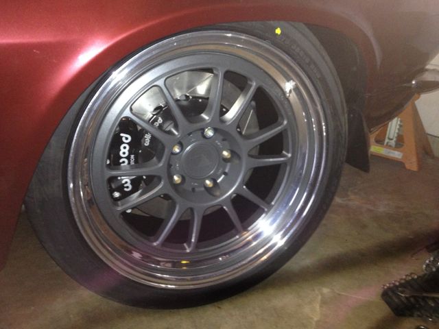 Wheels are back and on the car. They now fit the hubs perfect. I'll try to get some better pics of them this weekend and I hope to have it very close to driving by Sunday night. The exhaust is driving me nuts. Too many options that take a lot of time to test out.... Not sure what to do. |
