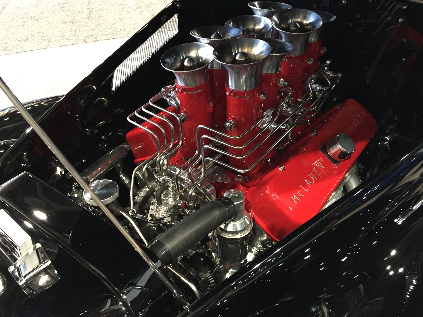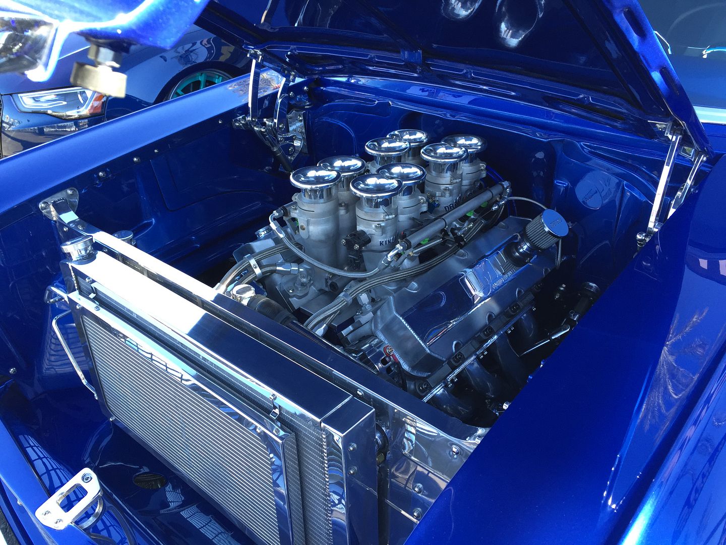 Powered by a SOHC FE with a custom intake with what looks like two halved 715 Holleys with LeMans bowls, but that's obvious.:lol: |