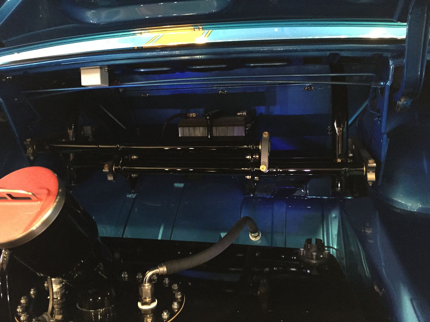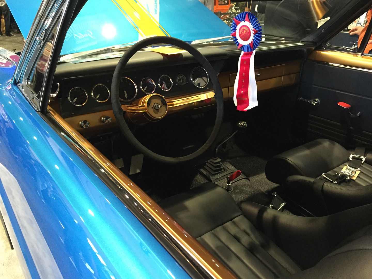 Given some of the thoughts mine included about some of the cars being a bit over done, the Stroppe Fairlane has become one of my favorites of the show. I remember when he first started getting ink on his cars I was like "eh", but the Martini Mustang, last year's well done 2nd gen Camaro, and this Fairlane have really engendered a lot of respect in me. His builds have taste and quality, and the Fairlane and Mustang really rode their respective themes out perfectly. Both were unique with a lot of the details we all love, but the uniqueness was completely baked into the overall theme of the vehicle. I mean in this jaded era of twin turbos, and LS-everything - sure we've seen vintage style builds with a Ford SOHC before, but the dual split carbs are just the little touch that's like "whoa, I haven't seen that done before". The torsion bar suspension is a bit gratuitous, but it beats leaf springs, and a regular control arm/coil spring might not have fit the theme as well. The wheels are perfect. Maybe my favorite car of the show, although I still have a place in my heart for the totally crazy stuff like the RS 2nd gen track car.
