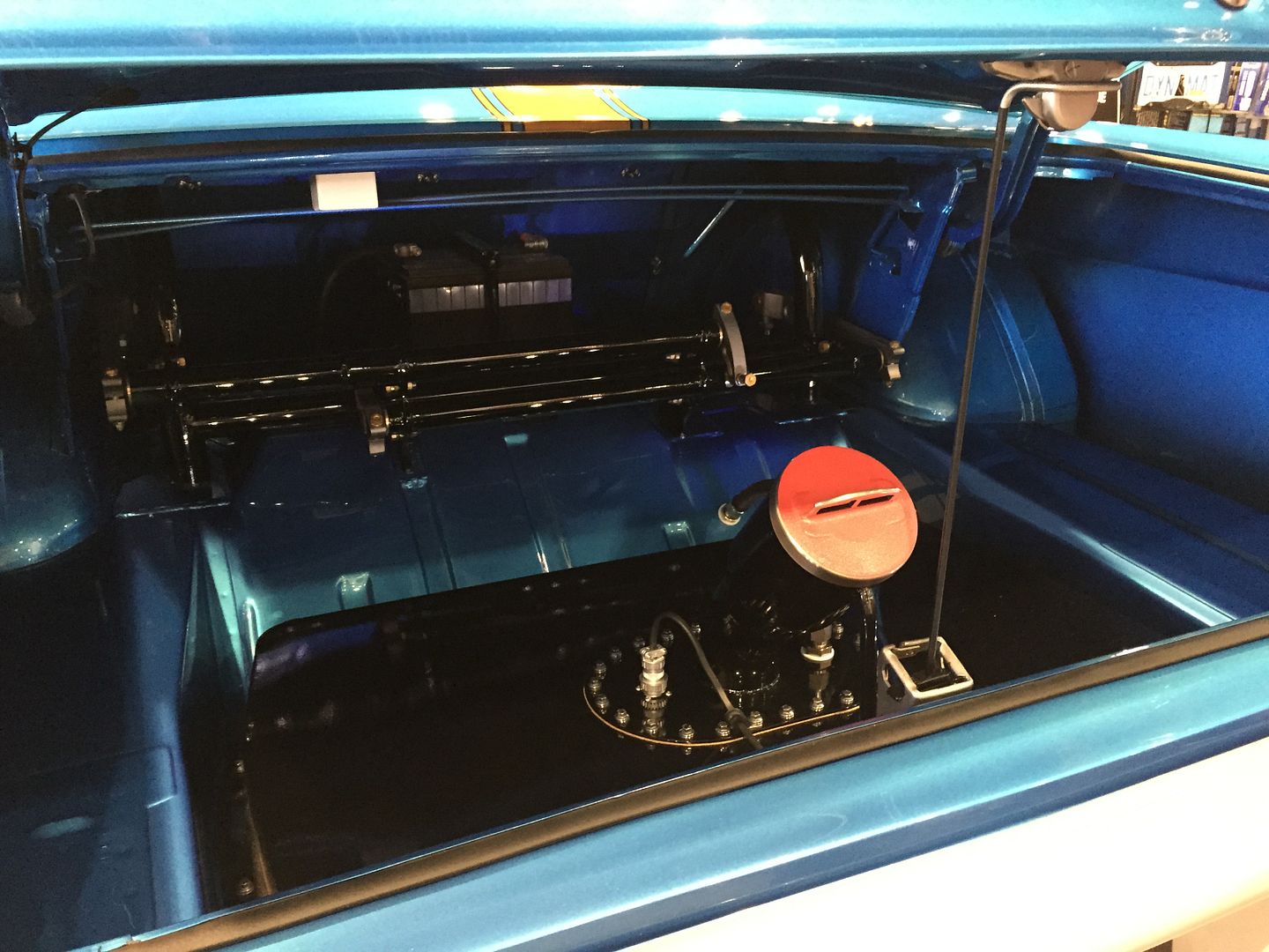 (I thought it was a Fairlane actually). It looks like a swaybar that is sitting in the trunk but then there is two of them or something. It might just be a trick of the light that I can't figure out what that is but it looks very mechanical. That whole car looks really nice though. That Nomad wagon is nice, and the CTS-V with the twin turbo engine looks bad ass, almost wish I'd dumped my money into something like that instead of a classic ! Quote: