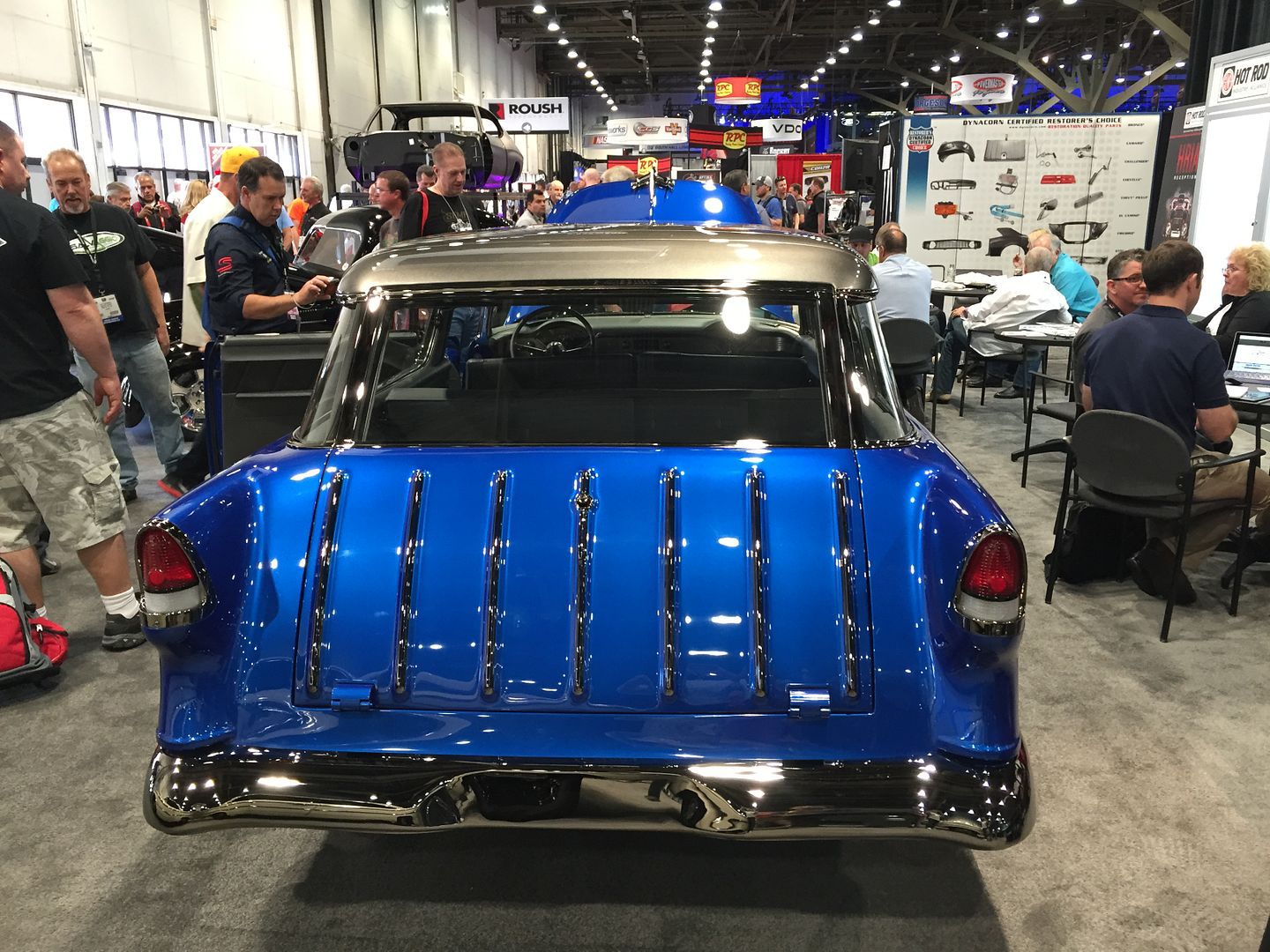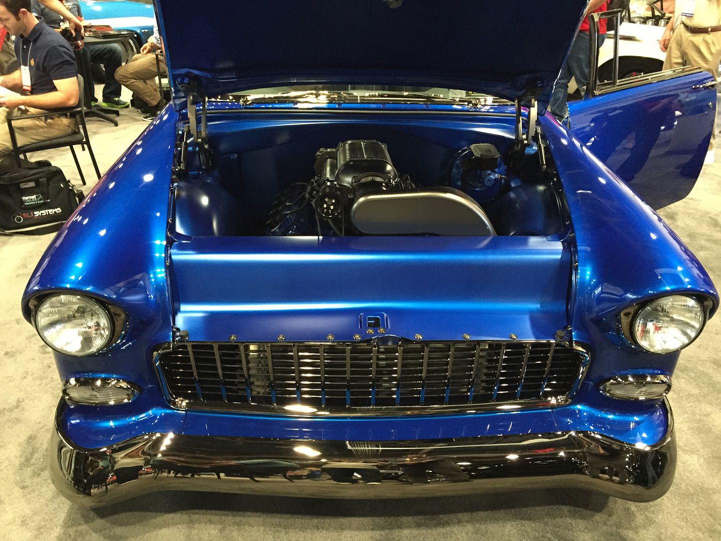 Thanks Al! That dark blue/titaniumish tri-5 wagon looks like it has the new Mercury 4 valve LS heads on it. Any body know that builder? I'm curious about power numbers vs. cost...