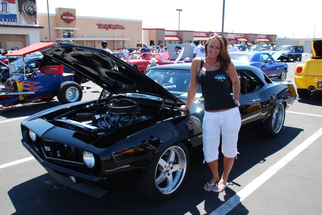 I did attract the hot chicks at the show. The local gun store had models. I was so dumbfounded when they all jumped in my car I didn't even get a shot. I did drag the best looking one over for a photo later. You can kind of see the Pro Street car by the right side of my hood in the last shot.