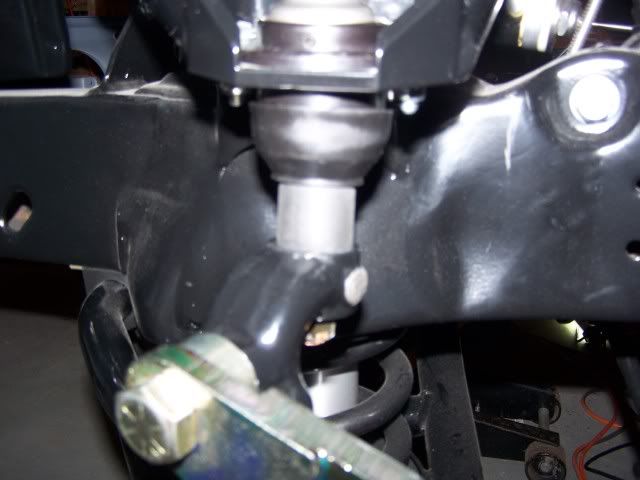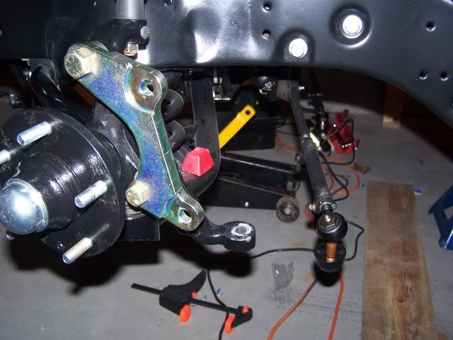 Well here's a little update. I put some Howe tall ball joints and tie rod ends on the car. The only part thats was Tuff was taking a hammer to my newly powder coated spindles. BRRRRRRR! Here's a shot of them installed