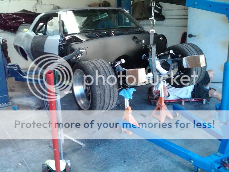Here is a list of necessary hardware which I have compiled for anyone attempting such a feat. 1 two post lift 1 engine hoist 2 rolling wheel cribs 1 standard floor jack 1 aluminum floor jack 1 2x4 2 jack stands 2 of Steve Rupp's 18x12 wheels 2+ idiots 2 creepers for idiots Don't try this at home kids: http://i366.photobucket.com/albums/o...01010-1324.jpg http://i366.photobucket.com/albums/o...SA/shop091.jpg http://i366.photobucket.com/albums/o.../shop092-1.jpg http://i366.photobucket.com/albums/o.../shop089-1.jpg Matt |