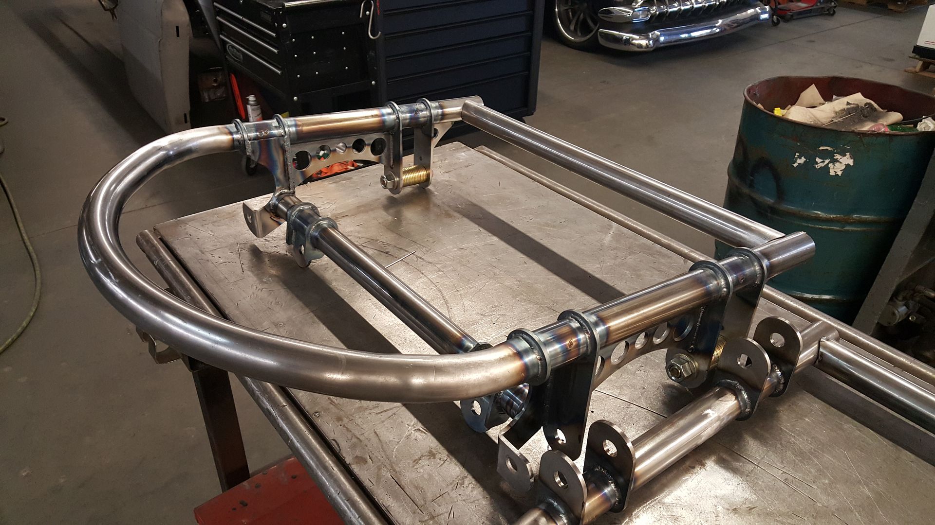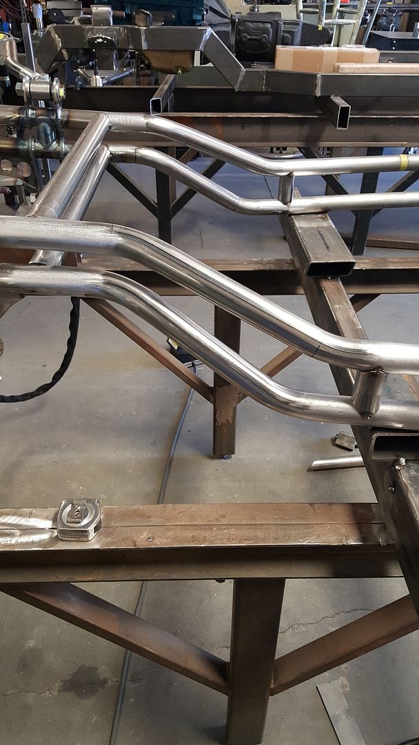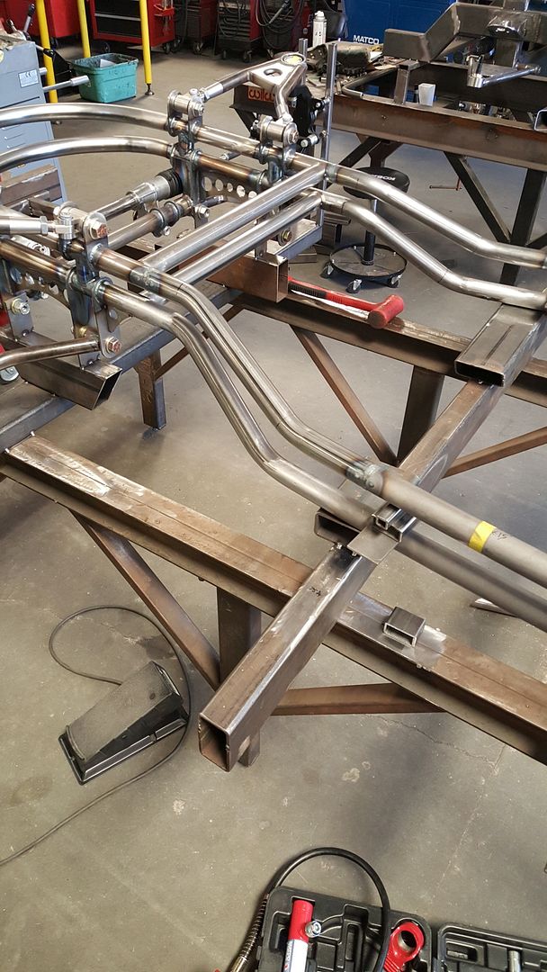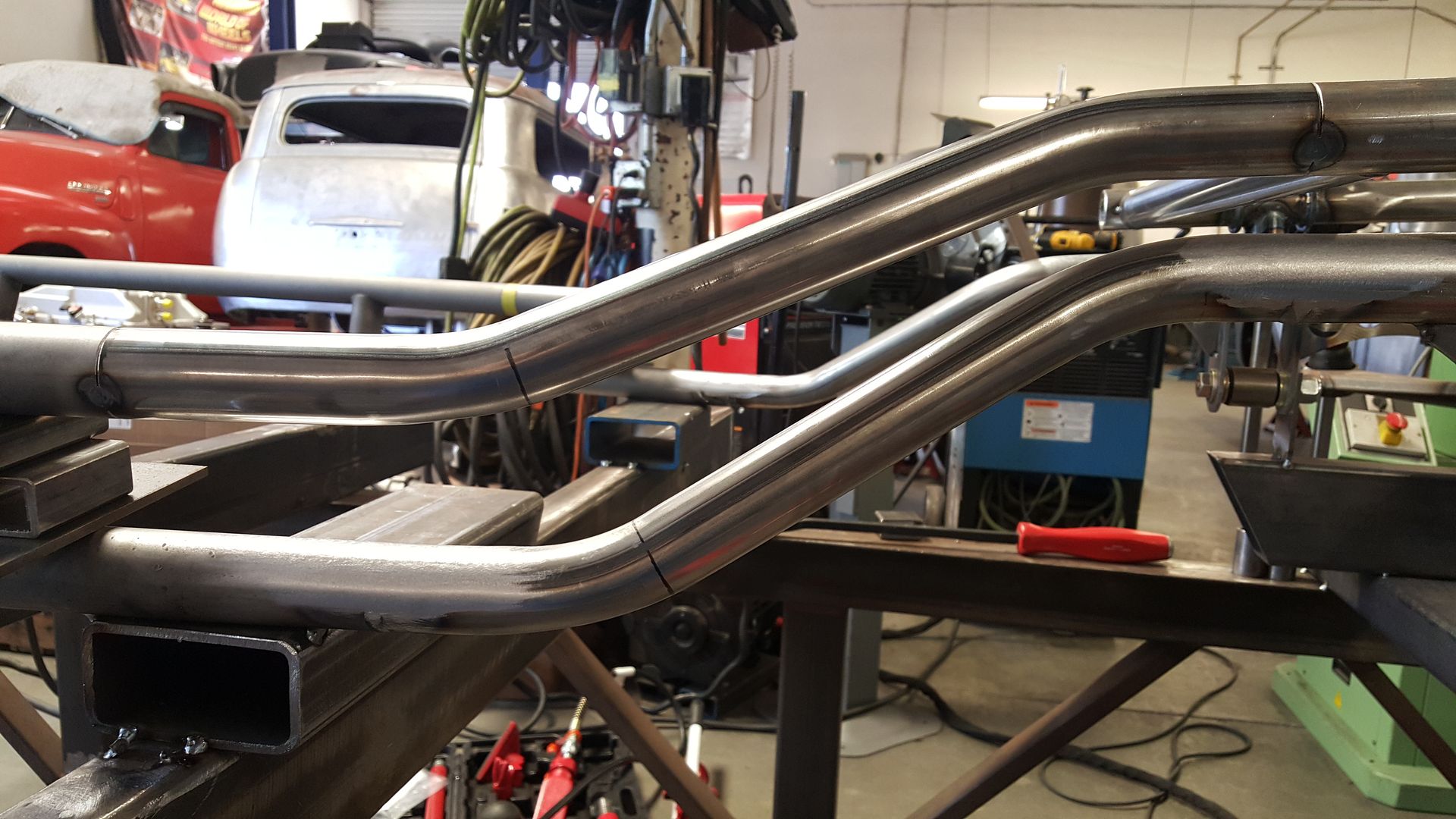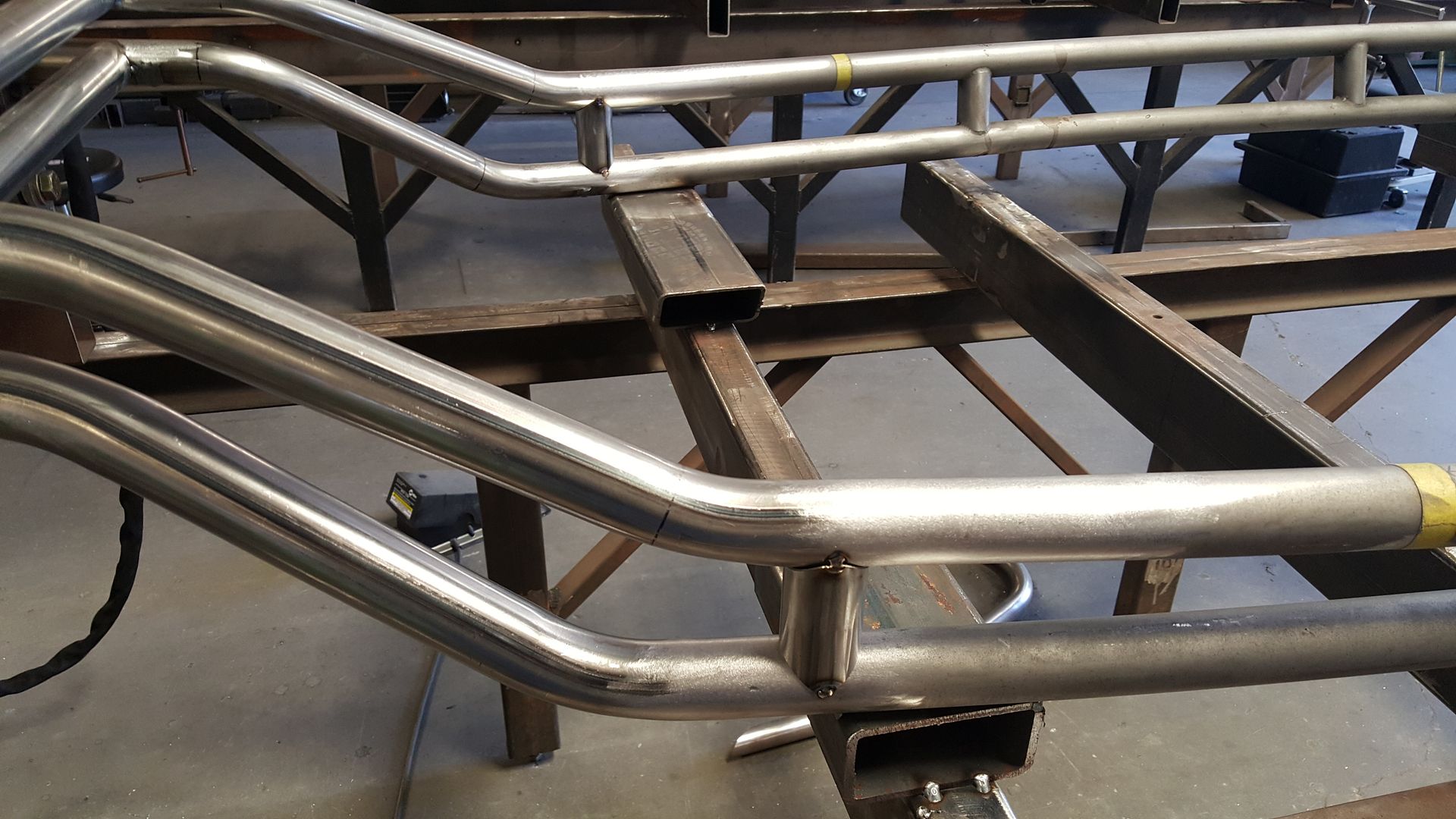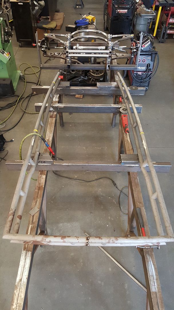 I welded out the new front clip, set the chassis on the table at ride height and proceeded to cut the the old center section out and narrowed the rails 4 inches. This was another design change that was decided when I switched the suspension plan to IFS. http://i205.photobucket.com/albums/b...602_194637.jpg http://i205.photobucket.com/albums/b...603_190943.jpg http://i205.photobucket.com/albums/b...604_193216.jpg http://i205.photobucket.com/albums/b...604_193235.jpg http://i205.photobucket.com/albums/b...604_193259.jpg http://i205.photobucket.com/albums/b...616_194407.jpg |