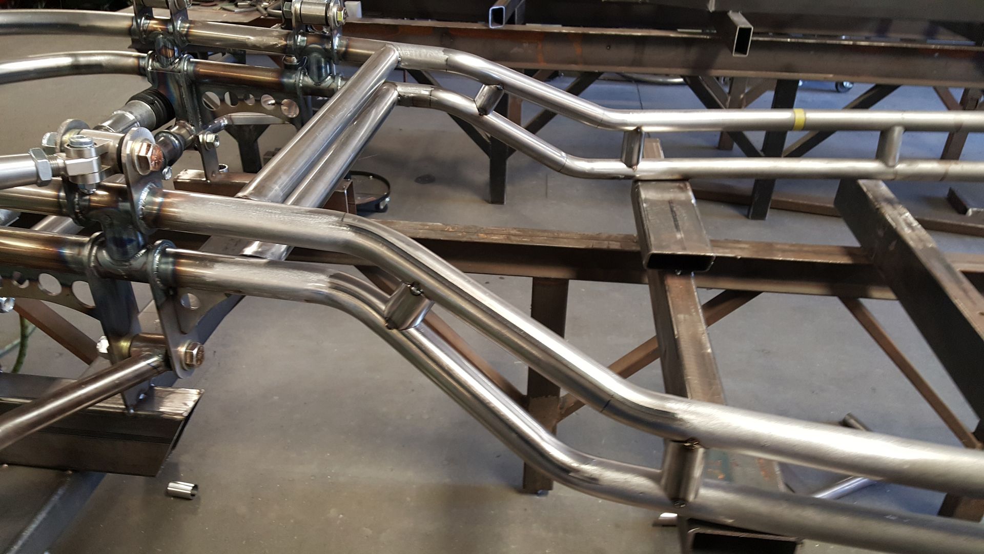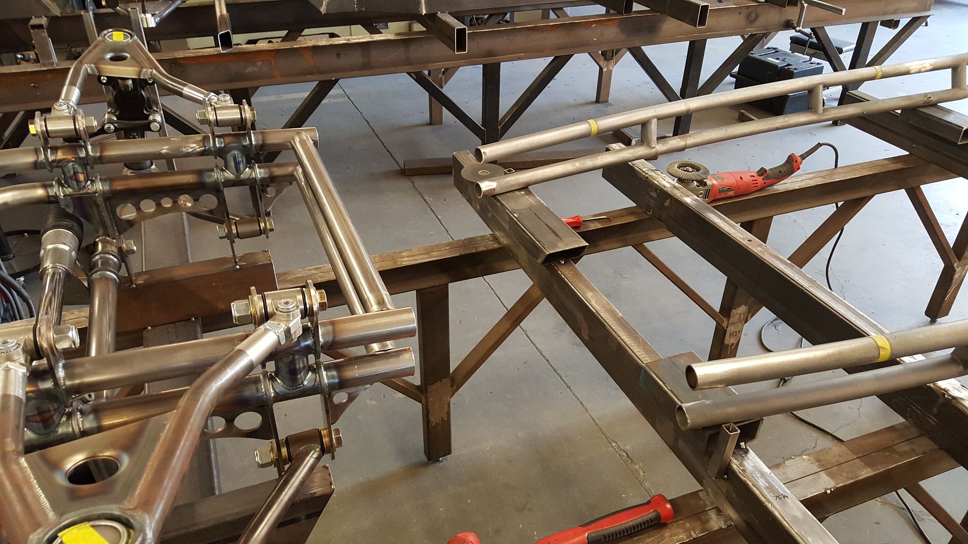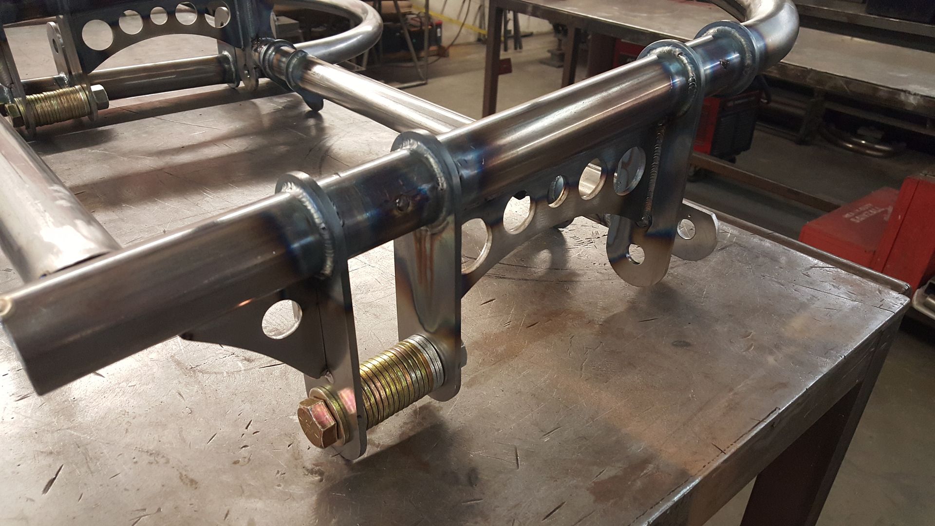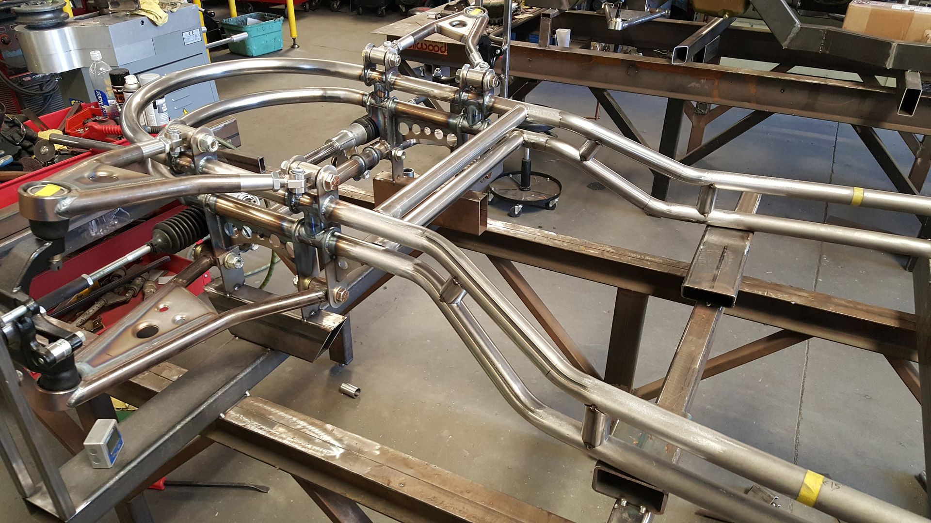 I welded out the new front clip, set the chassis on the table at ride height and proceeded to cut the the old center section out and narrowed the rails 4 inches. This was another design change that was decided when I switched the suspension plan to IFS. http://i205.photobucket.com/albums/b...602_194637.jpg http://i205.photobucket.com/albums/b...603_190943.jpg http://i205.photobucket.com/albums/b...604_193216.jpg http://i205.photobucket.com/albums/b...604_193235.jpg http://i205.photobucket.com/albums/b...604_193259.jpg http://i205.photobucket.com/albums/b...616_194407.jpg |