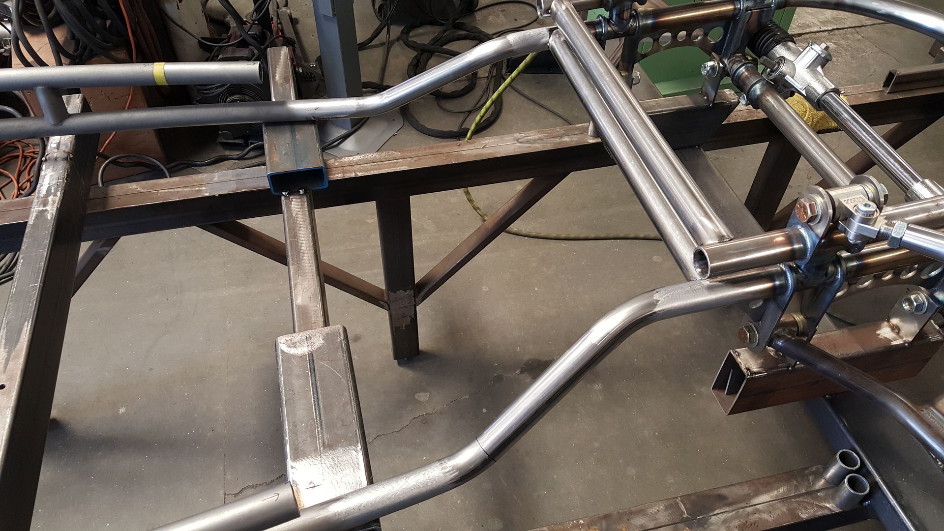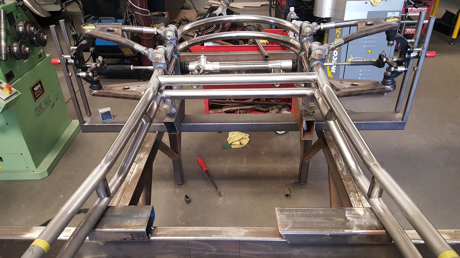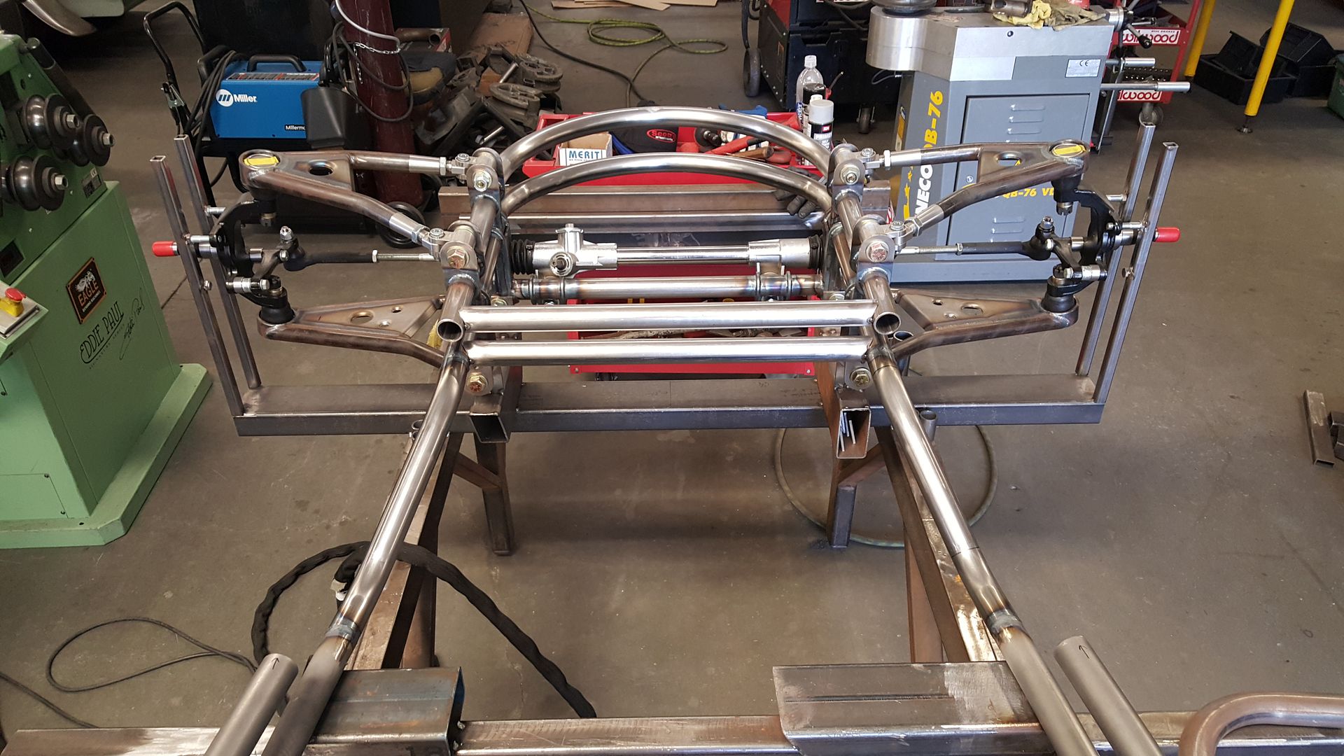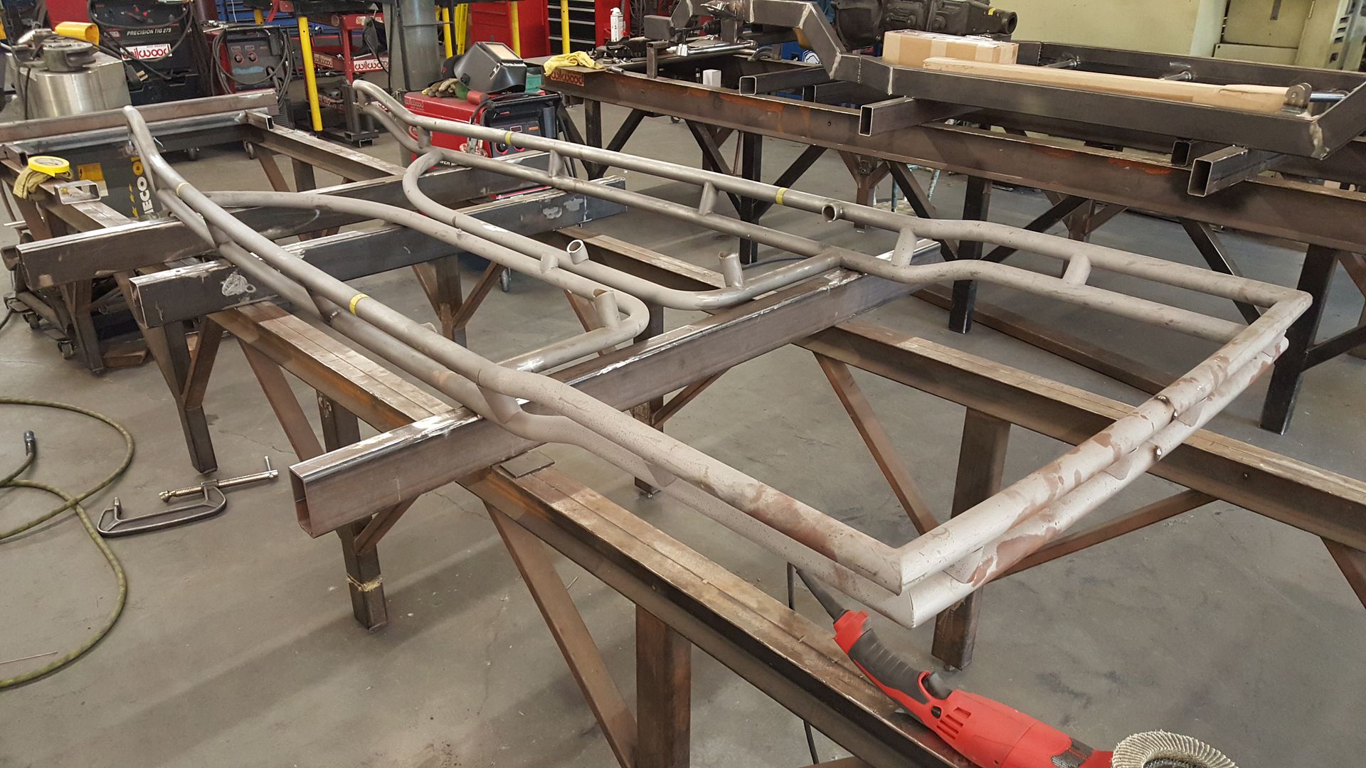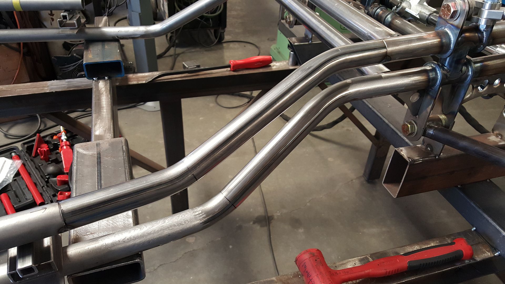 I welded out the new front clip, set the chassis on the table at ride height and proceeded to cut the the old center section out and narrowed the rails 4 inches. This was another design change that was decided when I switched the suspension plan to IFS. http://i205.photobucket.com/albums/b...602_194637.jpg http://i205.photobucket.com/albums/b...603_190943.jpg http://i205.photobucket.com/albums/b...604_193216.jpg http://i205.photobucket.com/albums/b...604_193235.jpg http://i205.photobucket.com/albums/b...604_193259.jpg http://i205.photobucket.com/albums/b...616_194407.jpg |