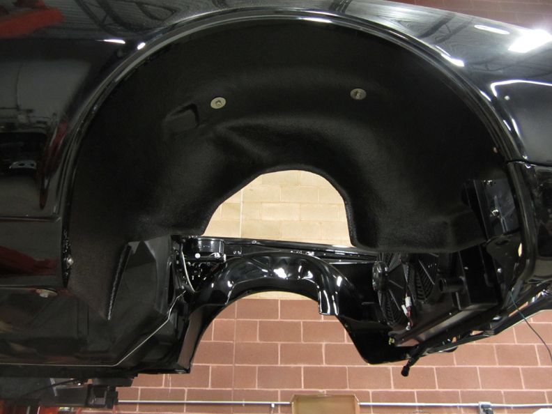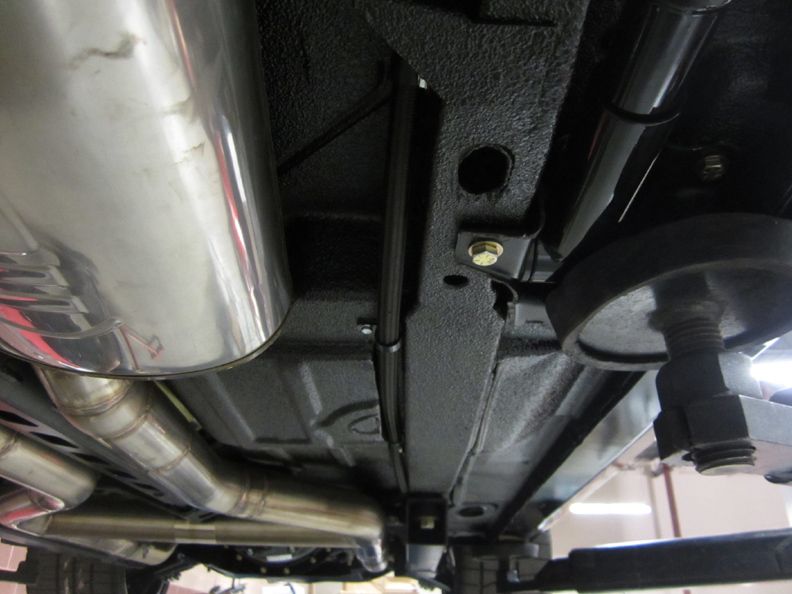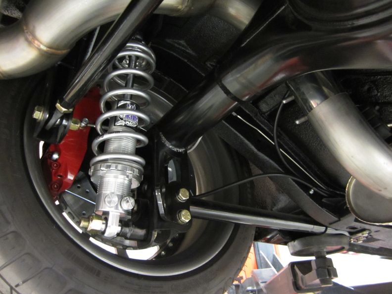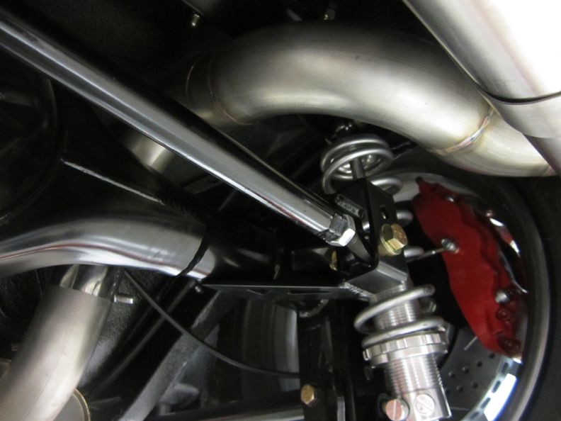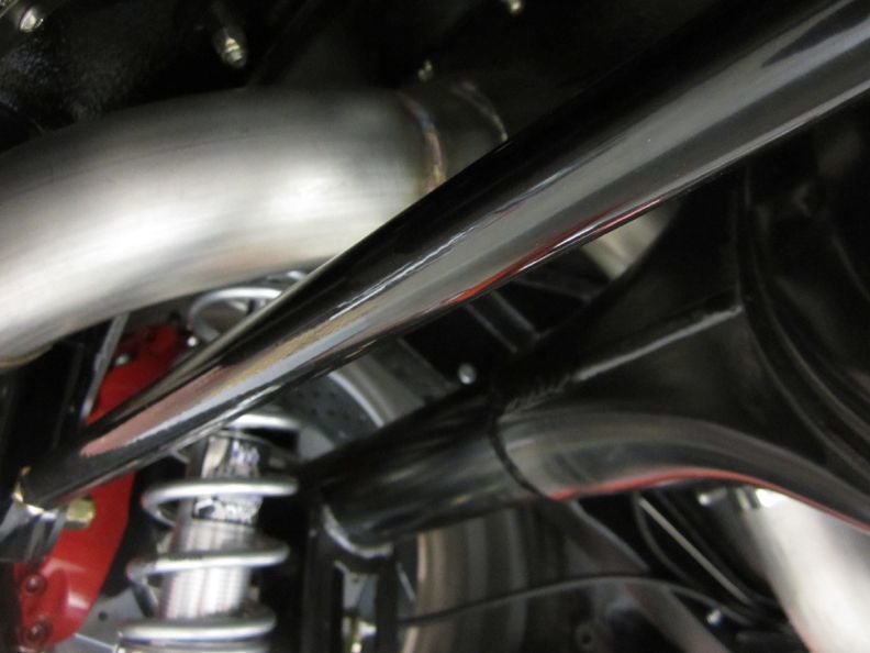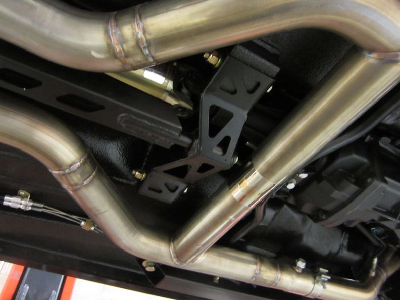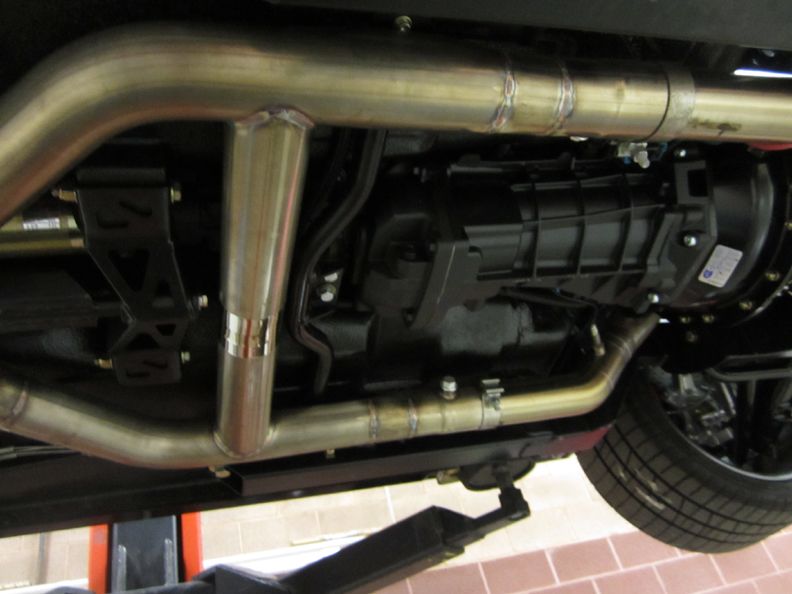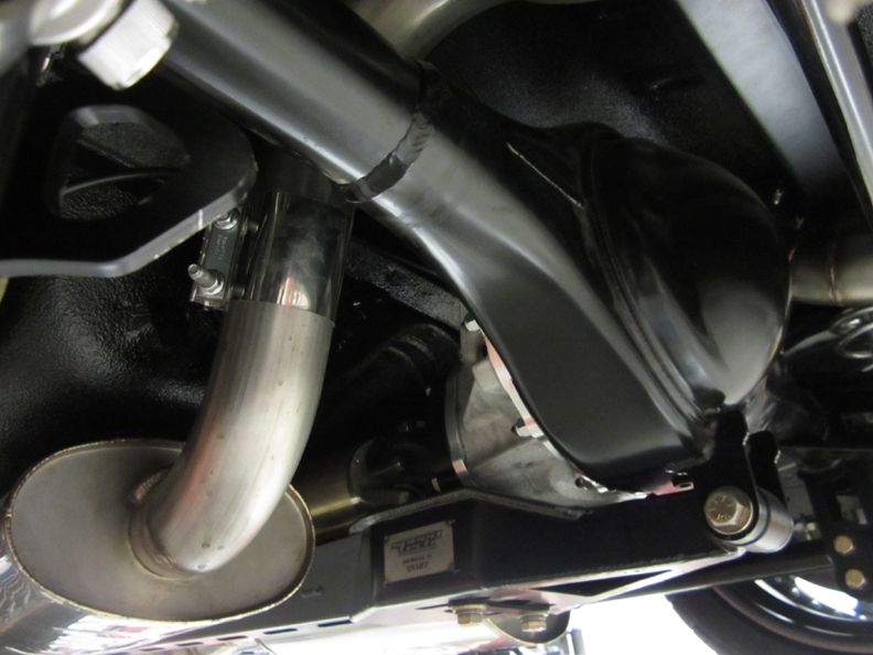More engine stuff, or rather how the exhaust fits with our extreme sub frames, torque arms and frame connectors. Several folks have been asking about this and as shown here we typically use dual 3" systems in most cars and send it out the back near the stock locations.