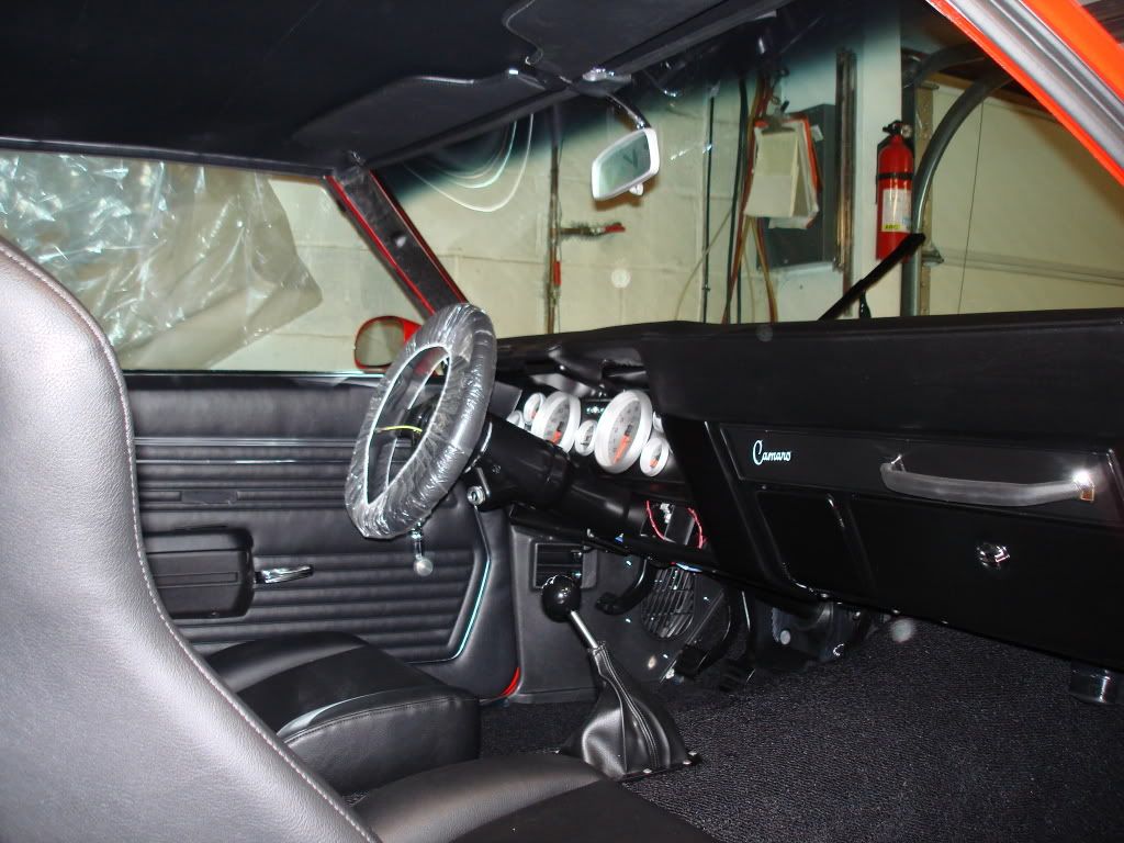 Made some progress on the interior, its starting to take shape. Tough time with the urathane repro dash pad but it will have to do for now. Recaro seats, kick panels, front door panels, done. Still have to pick up harnesses and a fire exstinguisher, should have the interior done by end of Feb. here's a few pics.