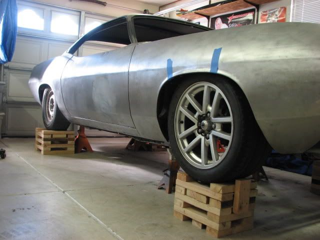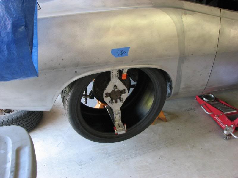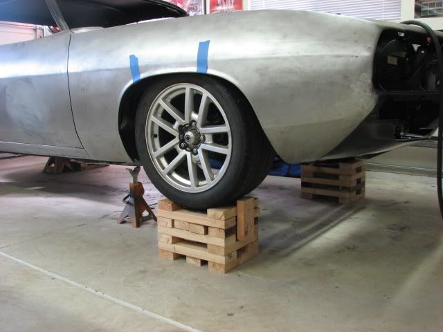 I used my Camaro rims as a trial just to see if a real rim/tire fit okay and check the BS one more time. I used Marty's Mount Mate to do most of the measuring but it never hurts to have an actual rim on there. http://i229.photobucket.com/albums/e...I/IMG_3994.jpg Then I went ahead and made some wheel stands. I had some wood lying around and I will need them for the rearend measuring etc so I spent a couple of hours ( is that better Greg?) making these... those are my old mock up wheels for now. http://i229.photobucket.com/albums/e...I/IMG_3997.jpg http://i229.photobucket.com/albums/e...I/IMG_4000.jpg http://i229.photobucket.com/albums/e...I/IMG_4001.jpg |