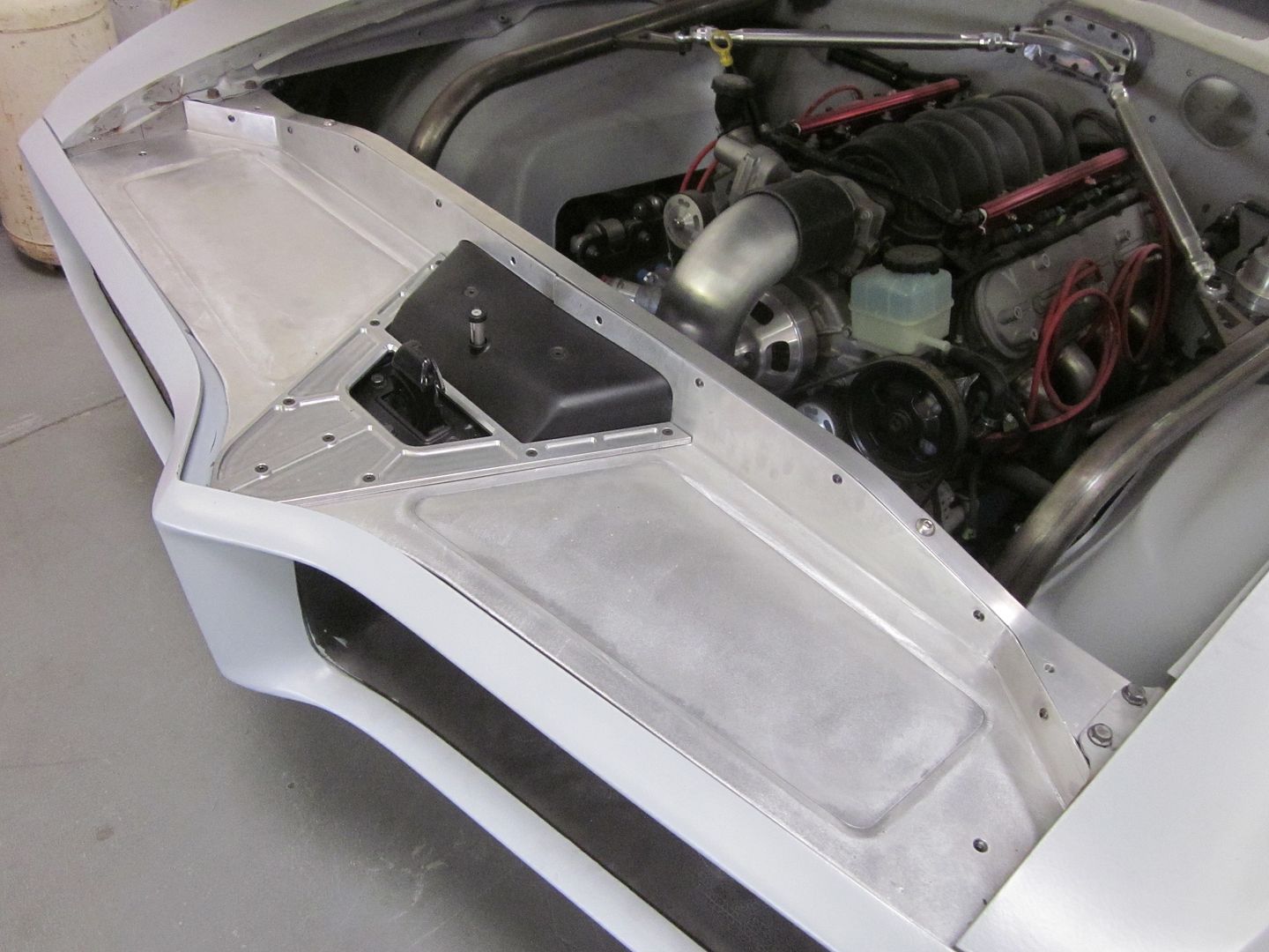 Here is a small update... We have the fab work pretty much completed on the radiator to bumper filler panel... We still have a few pcs in design to machine but we are close.. Notice that we have a billet spring plunger in the center instead of just a spring... All the work kind of matches the bumper to hood beak..
