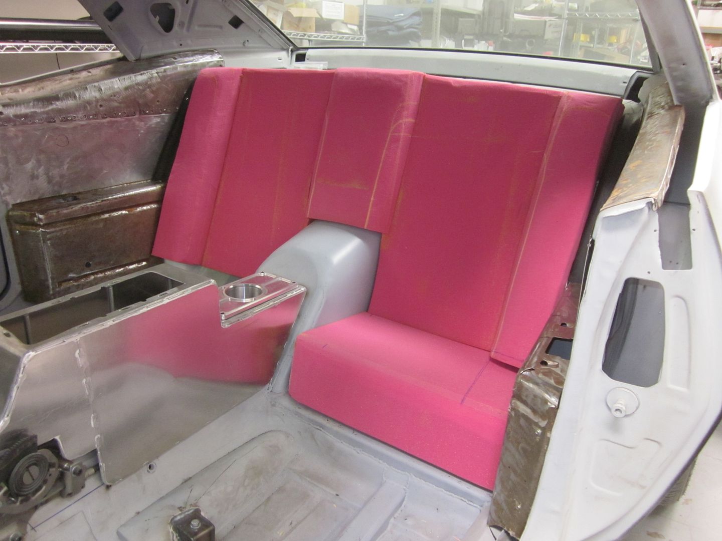 http://i1015.photobucket.com/albums/...n/IMG_2405.jpg We also started doing the back seat in the car to get a feel of what we need to do to match the console.. I think we will have to alter a few things.. JCG now has an in house interior guy.. That means my builds have to no longer go out for sub-contract work... http://i1015.photobucket.com/albums/...n/IMG_2406.jpg |