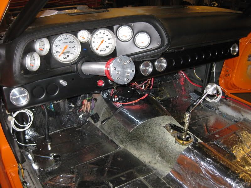 Well I got drug out to the Heidt's muscle car thing this week end so it will be next week before I can get back on the orange trud.Kevin may have broke his clutch or motor so it will be awhile before I have too leave home so I should have some time to finish it.:lol: I have some photo's of the dash installed,but after seeing the Roadster shops new nova I dont know why anyone would to look at my stuff.It's pretty plain.:_paranoid