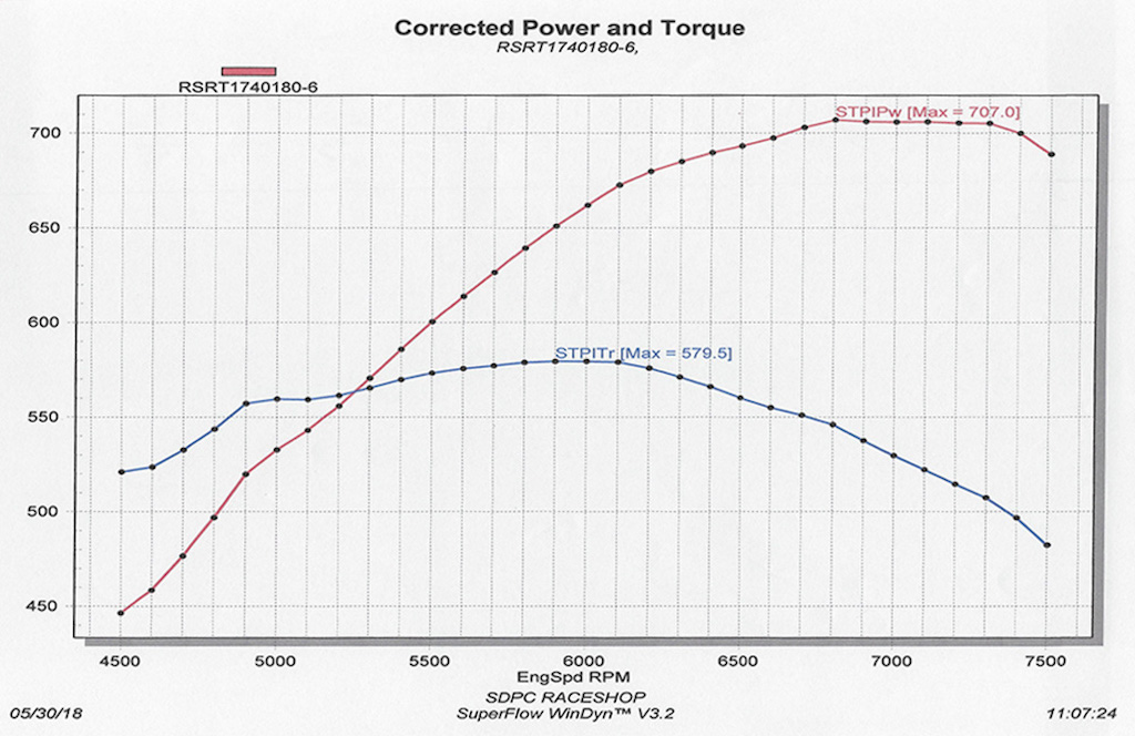 http://www.pro-touring.com/attachmen...1&d=1528125184 You can see a detailed list of all the internal components in our catalog HERE. Three things should stand out ... 1. The build components are almost overkill for "only" 700hp. That's to increase longevity. 2. The ARE dry sump is simply the best dry sump & best protection for the engine in a car with high G's. 3. The power curve is relatively "linear" which makes these engines easier to drive fast. A few other notes: A. The "dead on" dyno at Scoggin-Dickey shows 707hp. It will make 8-11 more horsepower once we we change the oil from Driven BR break-in Oil to Driven LS oil. B. We did NOT dyno the engine with step headers. If we did the top end power would be the same, but the power band from 2500 to 6000 would show higher & even flatter. C. Greg's headers are the RSRT "tuned" Step Headers ... 1-3/4" to 1-7/8" to 2.0" and will have more power from 2500 to 6000 than the dyno curve shows & be even flatter. D. This same engine with the very basic, single stage GM OEM LS7 dry sump makes about 15 less HP. E. The happy window power curve on this particular Track-Warrior engine is 2500-7500rpm on track. Front end, hood & doors mount this week. Powertrain next week. Still on track to track test June 28th. :) :cheers: |
