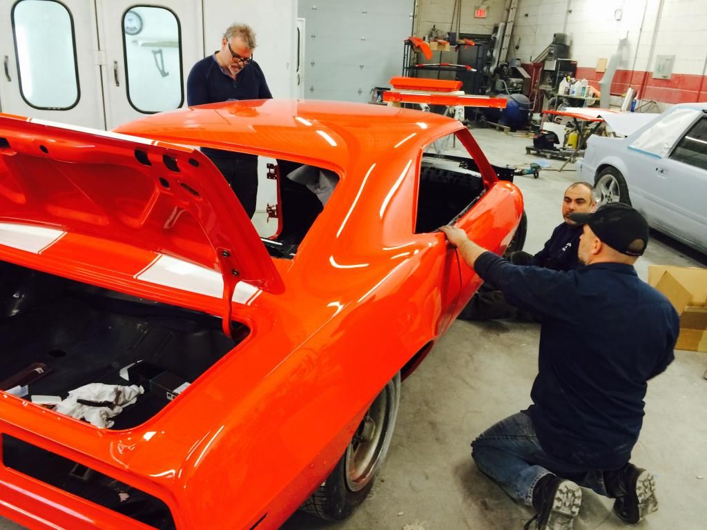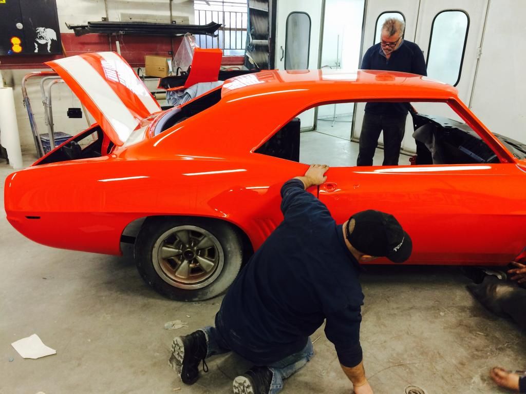 Hey guys thanks for all the great comments... means a lot! Its been a roller coaster ride but I'm now seeing the end and cant wait to get there. Its actually hugger orange with Toyota code 044 white stripes. Thanks for the tip Joe VanNus !!! Lou I have no idea how many coats of color and clear but I've been told by my painter that he's has gone through 2 gallons of clear LOL. I was told today the car should be ready to come home this Friday. So I hope to have it all assembled and running by the spring.