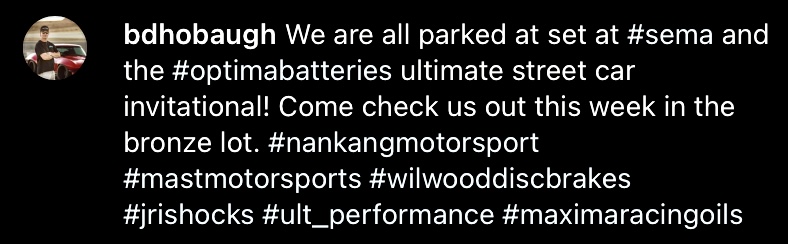 Super high quality SEMA protouring coverage..