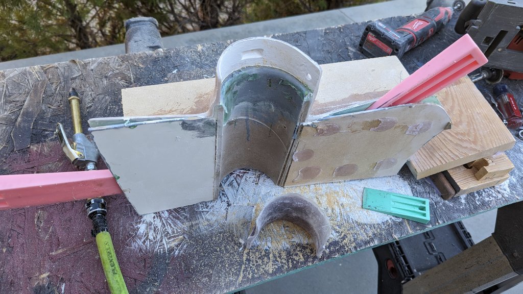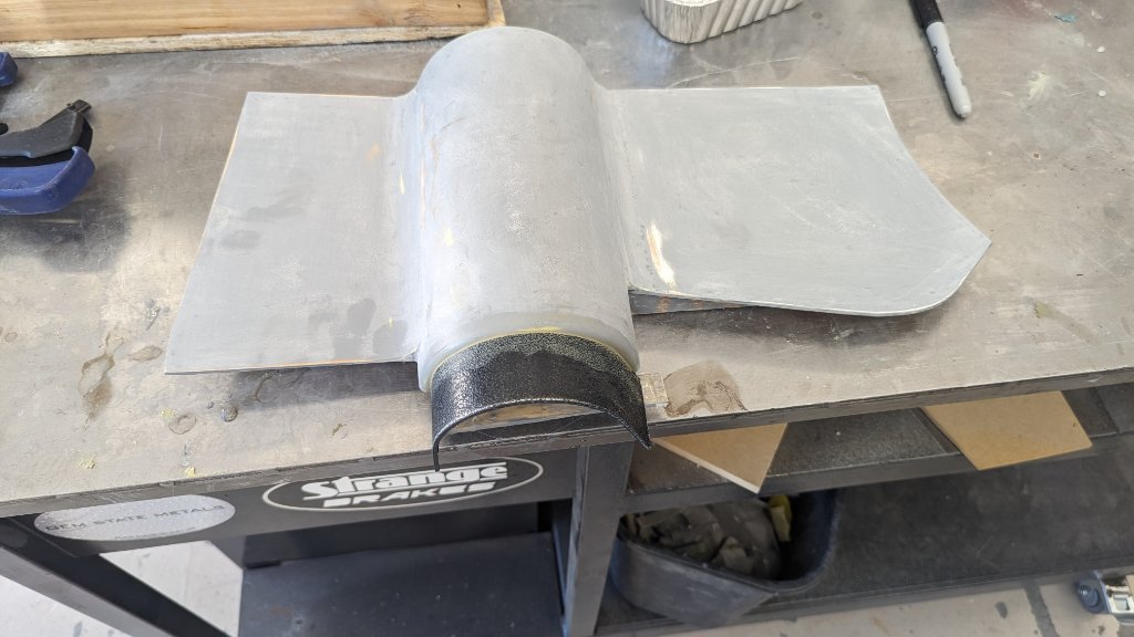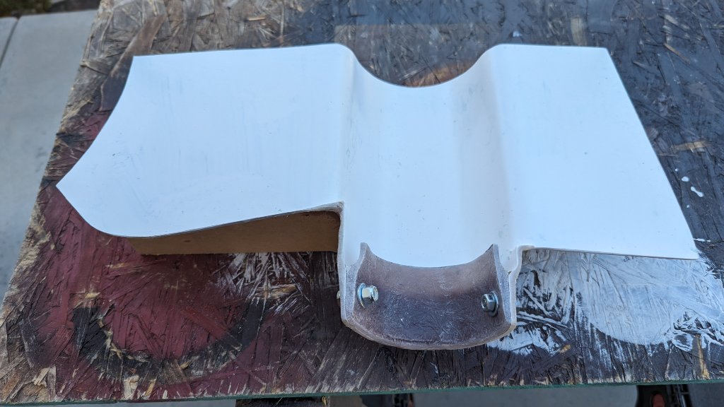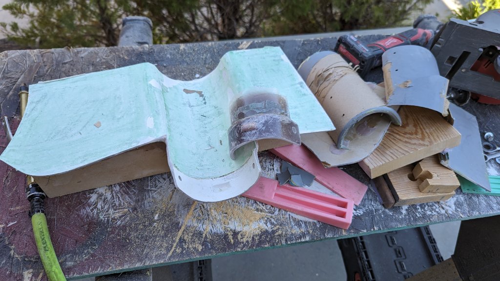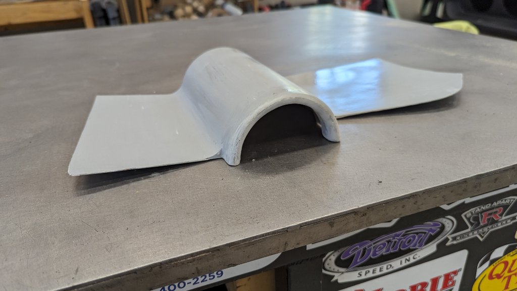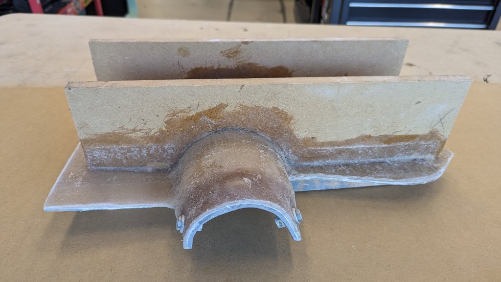 Attachment 80498 The plug smoothed and primed with plastic hot-glued in place for a flange in the 2 piece mold. Attachment 80499 The mold completed, with the plug still in it. Attachment 80500 Same, other side. Attachment 80501 Breaking out the plug from the mold. Attachment 80502 All broken apart. Attachment 80503 Mold cleaned and ready to laminate the part. Attachment 80504 Yes, lots of work for a one time use mold...for a part that is getting covered and will basically be hidden from view. Attachment 80506 |