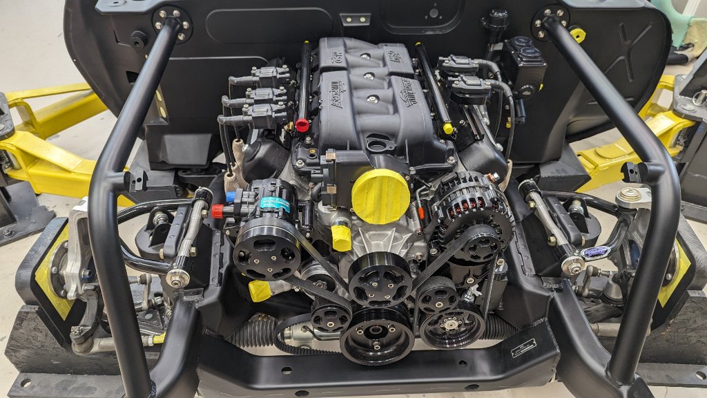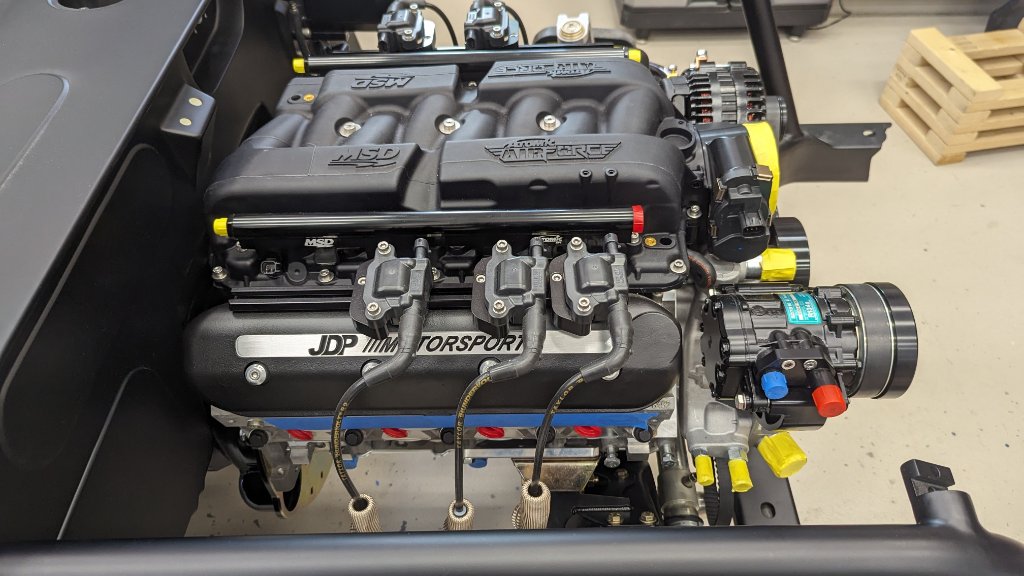 Set the engine and trans in this weekend. Not permanent, have some details to work out with the dry sump and the headers. It was pretty satisfying for sure!!