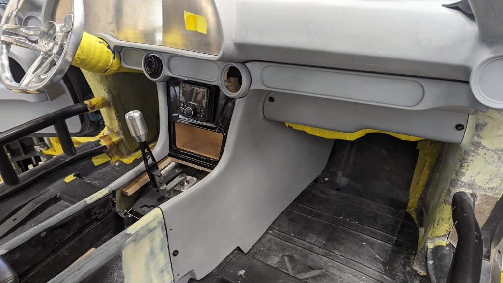 Attachment 80730 Adding some dimension to the waterfall, more coming. Attachment 80731 Adjusting the storage compartment. Attachment 80732 Filler doesn't stick great to this soft plastic but good enough to just be a final smooth. Pretty sure I'm going with leather cover here. Like the rest of the interior parts I've built, just trying to give the interior shop a baseline to work with, then let them sprinkle their voodoo on it. Attachment 80733 Hung the center section just to measure for the axles. Attachment 80734 |