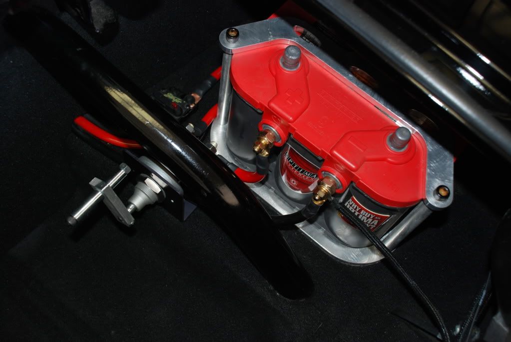 As the car and myself have gradually gotten faster along with the onset of old age, :unibrow: safety comes into play. One thing I've always wished I had was a power cut off switch. A majority of fires are caused my an electrical short. It will also be nice while servicing the car. Flaming river makes this big daddy that is NHRA approved and will take 2500 amps for 5 second intervals and 200 continous. Maybe a little over kill but I like a margin of safey. http://www.flamingriver.com/index.ph...s0004/FR1003-2 I set out to poke a hole in the rear facia right below the bumper but couldn't bring myself to it. I'll probably do it down the road. Anyway, I just put a make shift T handle on it for now but it's in the right location for the rod down the road. As usual, this turned into quite a little project. I had to rework all the cables and wires minus the negative side. I'm happy with the look and function. I'm going to order a different sticker with the push off instructions. I also plan to cover the terminals. The only bitch I have with it is a roll pin holds the lever on and you must install the switch in the bracket before you put the arm on and beat in the roll pin. The arm won't fit through the hole in the bracket. The hole is also at and angle so a machine screw won't work. http://i200.photobucket.com/albums/a...9/DSC_0045.jpg http://i200.photobucket.com/albums/a...9/DSC_0048.jpg http://i200.photobucket.com/albums/a...9/DSC_0050.jpg The second thing I added is a ROLL OVER SWITCH. I wired it into the ground side of my fuel pump relay. The car must be upside down for this switch to cut the ground to the relay. While I hope to never test this one out, I wouldn't want to be upside down with 140 per hour flowing. It's the red capped switch next to the fuel pump relay. I wired it so that if it malfunctions, I can simply uplug the connections and bypass it. The switch is made by painless. http://i200.photobucket.com/albums/a...9/DSC_0038.jpg Neither mod was very expensive, I probably have $250 in the whole deal. The cut off switch was pretty time consuming but that was due to packaging and working around the previous set up. I wouldn't build another car without either. |
