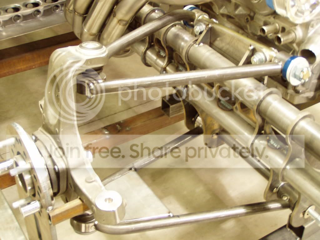 http://i338.photobucket.com/albums/n...9-13-08003.jpg http://i338.photobucket.com/albums/n...9-13-08004.jpg Once everything checks out, we will model some trick parts in SolidWorks and machine them from billet aluminum. This photo shows the clearance between the frame and the header for the UCA. http://i338.photobucket.com/albums/n...9-13-08009.jpg --Eric |