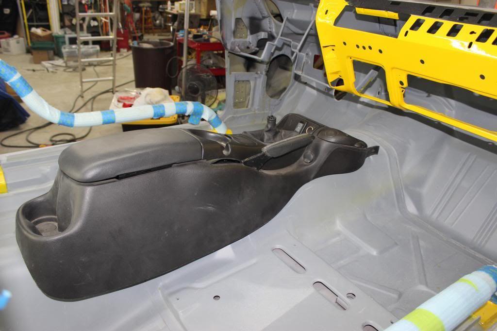:superhack: Take's some time to get the height right and make the emergency brake line up correctly. I had to modify the original mounting plate from the fourth gen, and I plan on making a filler panel for the front of the console and put the radio in that spot. :gitrdun: