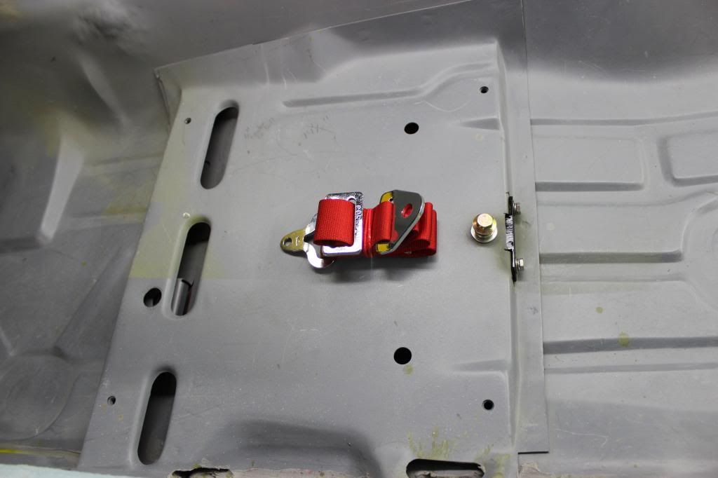 :superhack: :welder: I had to come up with a way of attaching the center belt to the floor after the seat pan was welded in. It looks like it should work. http://i1087.photobucket.com/albums/...t/IMG_9873.jpg