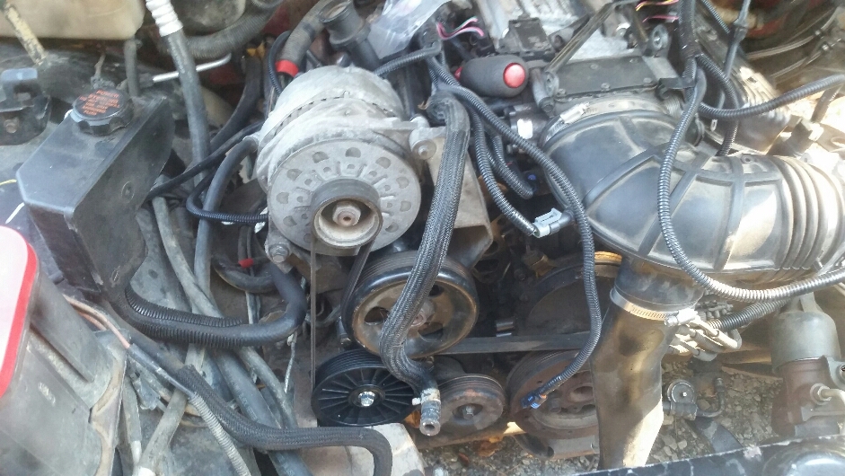 Decided to just notch the frame for the Z28's accessory bracket to save on costs and time. Later I will box the frame back in. Attachment 60243 It is notched to fit the 1LE pulley plus with the Z28 power steering pump one of the lines will reach the truck steering box and the other is about 8 inches to short so to reach i'll get a new line made plus I'll need to make a bracket for the reservoir. Attachment 60244 And here is the clutch pedal bracket support brace I made out of some flat steel from the part store and just made a z out of it to hold the bracket up and solid. Also turn the engine over yesterday so now it just a matter of time before it's running and running down 4.6 Mustangs. |