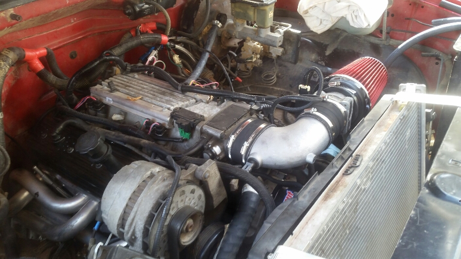 Here is the air intake done on it with a $44 ebay aluminum elbow and a part store Spectre air filter with the cool choose your size that will fit a 3in, 3.5in, or a 4in inlet size.