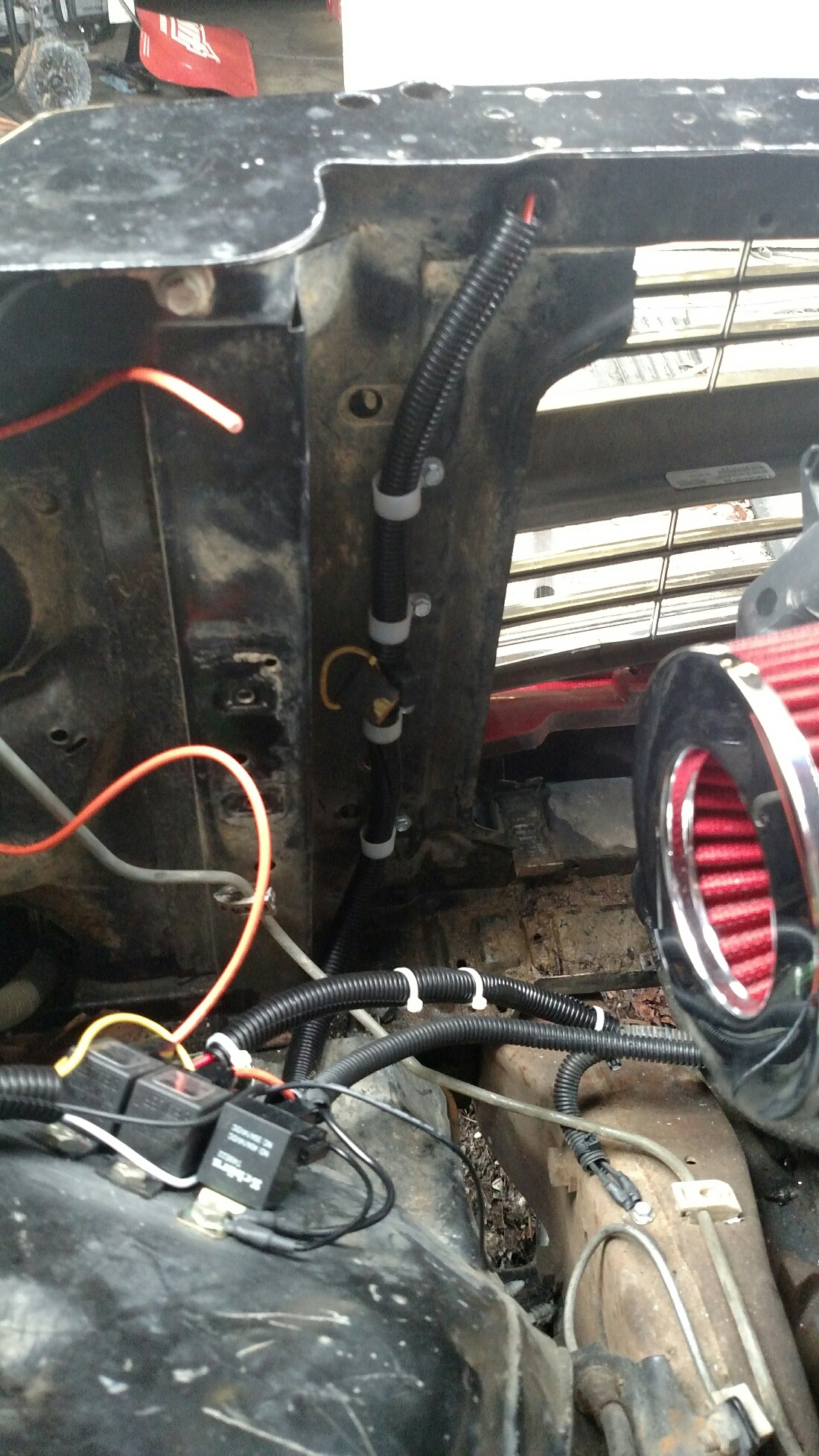 Attachment 60781 Then proceeded to get the water pump wired up and the #1 fan wired up and #2 lacking two wires bit with the rain a weather I haven't been able to finish it yet but it's alot cleaner than most of my wiring in the past. Attachment 60782 Filled the transmission up after getting the driveshaft bolted in. And bought a 1994-96 Impala SS throttle cable to use and it was to short to reach the pedal so I bent the pedal rod inward towards the firewall and it feels good after some tweaking. Then I drove it today for the first time under its own power to get the start of the year started in the right direction. |
