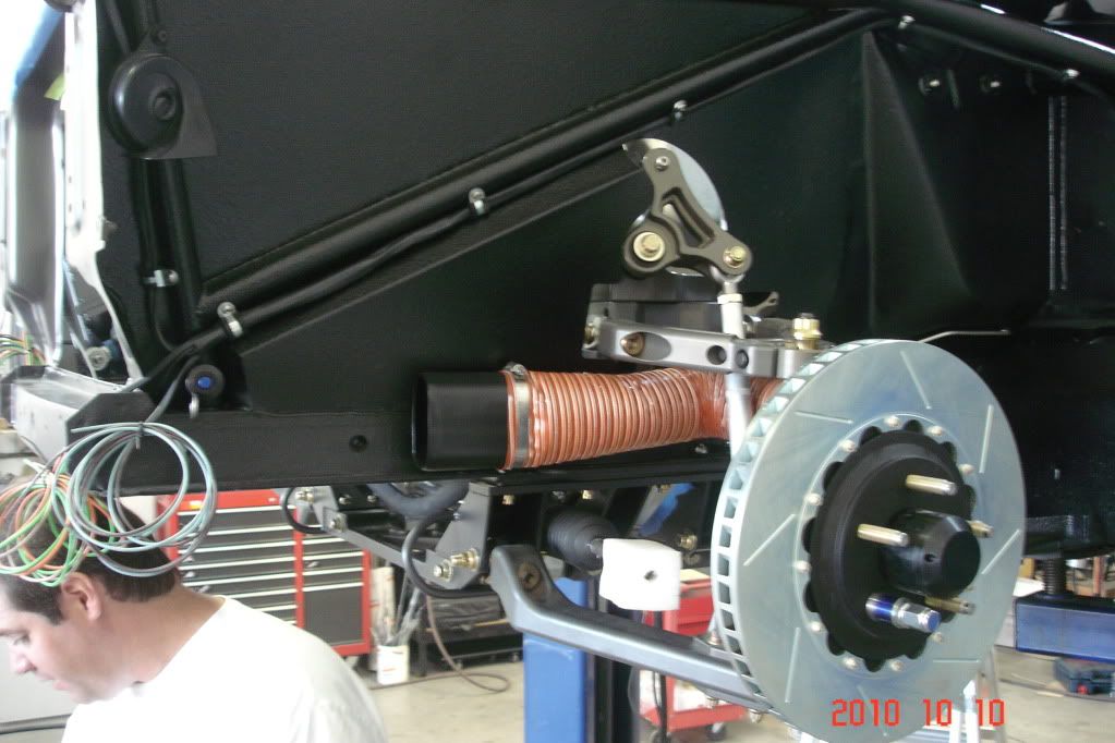 This shows how Steve and the boys narrowed down the front brake cooling duct by making an oval shaped steel tube that the hose connects to to allow for tire clearance. The rest of the hose that goes to my collector bezels wasn't in place at time of this shot.