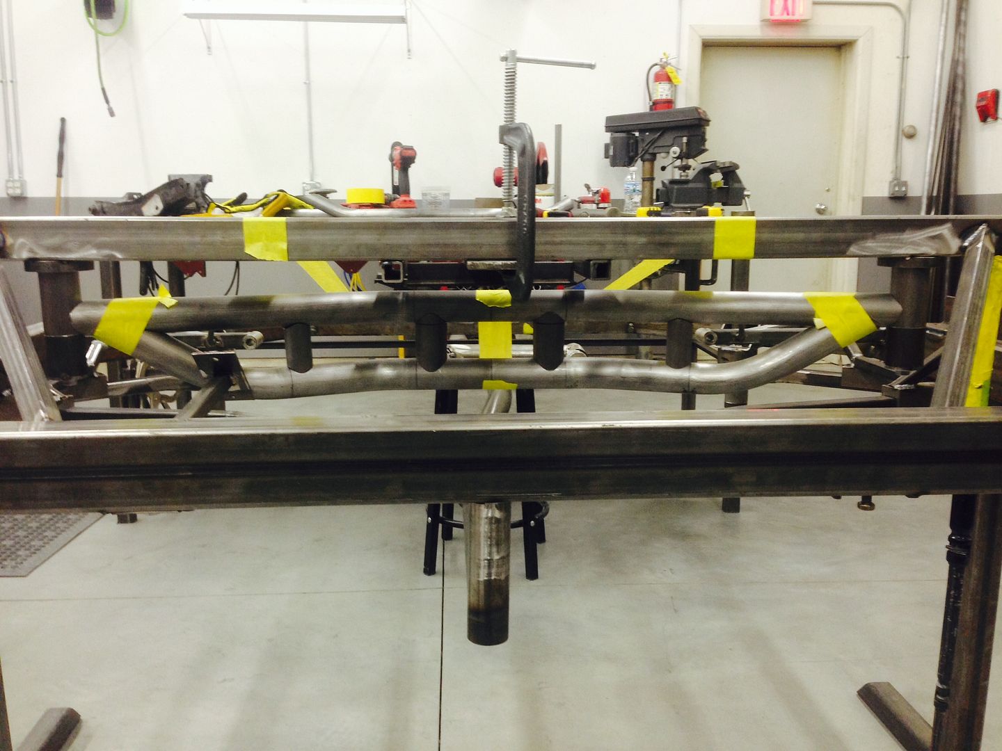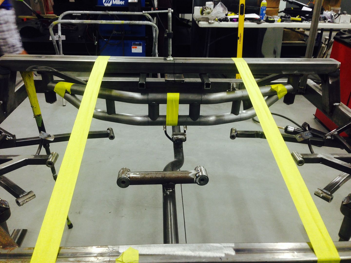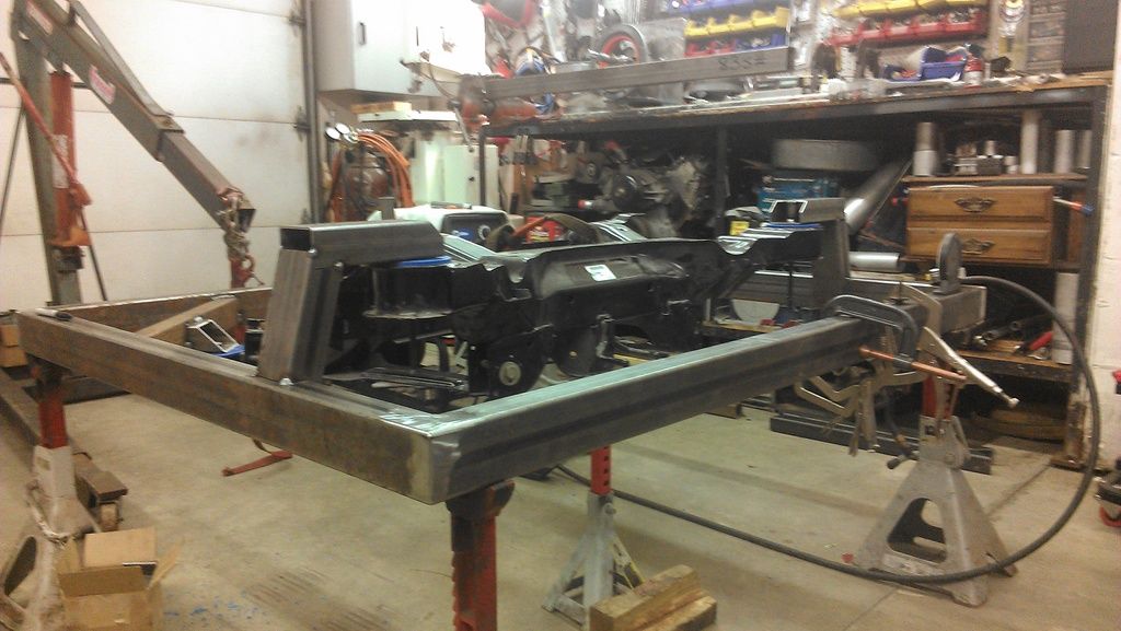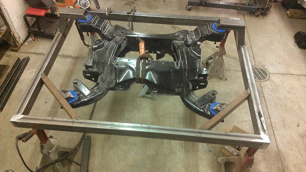 The stamped factory rear cradle is being replace with a custom chrome-moly tubular deal. Here are a couple of pics of the jig being fabricated. Should drop another 60 - 70 lbs. http://i1231.photobucket.com/albums/...ps46c6d9eb.jpg http://i1231.photobucket.com/albums/...psaff16a07.jpg |