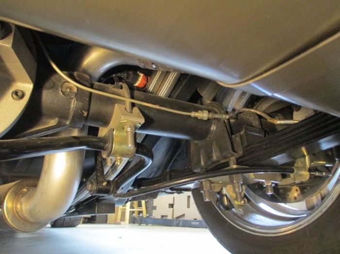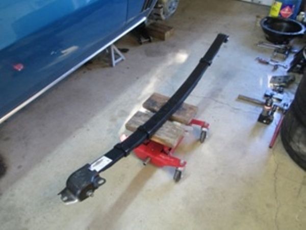 Since installing my new 427” LS engine I have had some problems with my rear leaf springs wrapping and the car squatting under hard acceleration in the low gears. The leaf’s wrapped enough that I could feel a very slight drive-line vibration. I had to use wedges to change the pinion angle by 3 more degrees to eliminate the vibration problem. The car still handled good with the Hotchkis multi-leafs and rear sway bar set up… but I didn’t like the squat and the wrap.